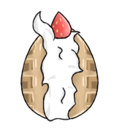 알의 가운데에는 달콤한 크림과 겉에는 크림을 감싸는 바삭한 빵이 꼭 와플을 닮은 이상한 알이다.