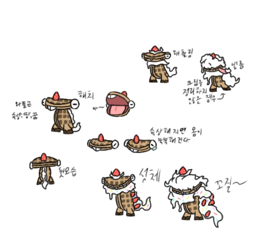 와플곤 스토리에 대사가 없는 이유는 와플곤 생김새가 좀 말을 하지 않는 설정이 어울릴거 같아서 대사를 넣지 않았습니다.
