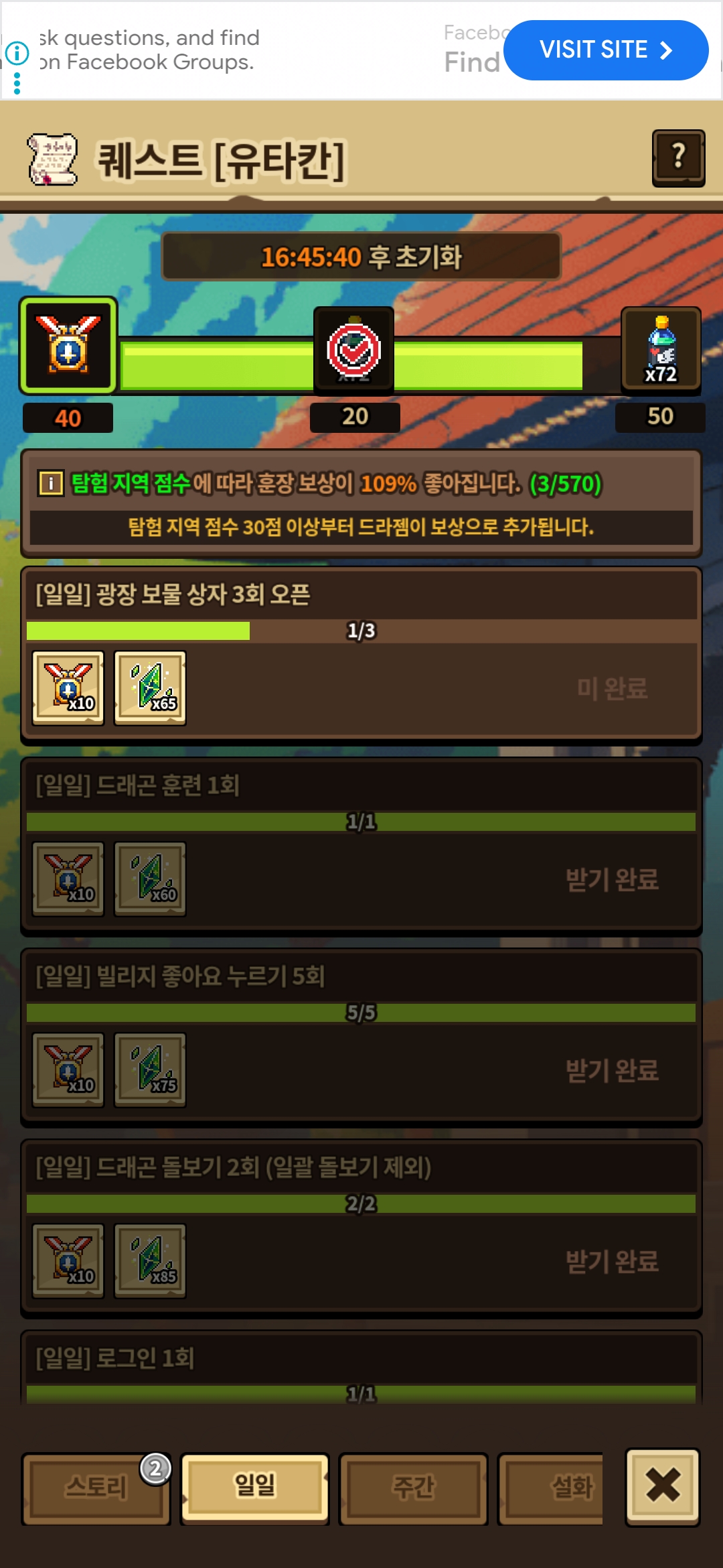 보다시피 보물 상자 오픈 퀘스트를 클리어 하지 않았는데 보물 상자가 싹 사라졌습니다.