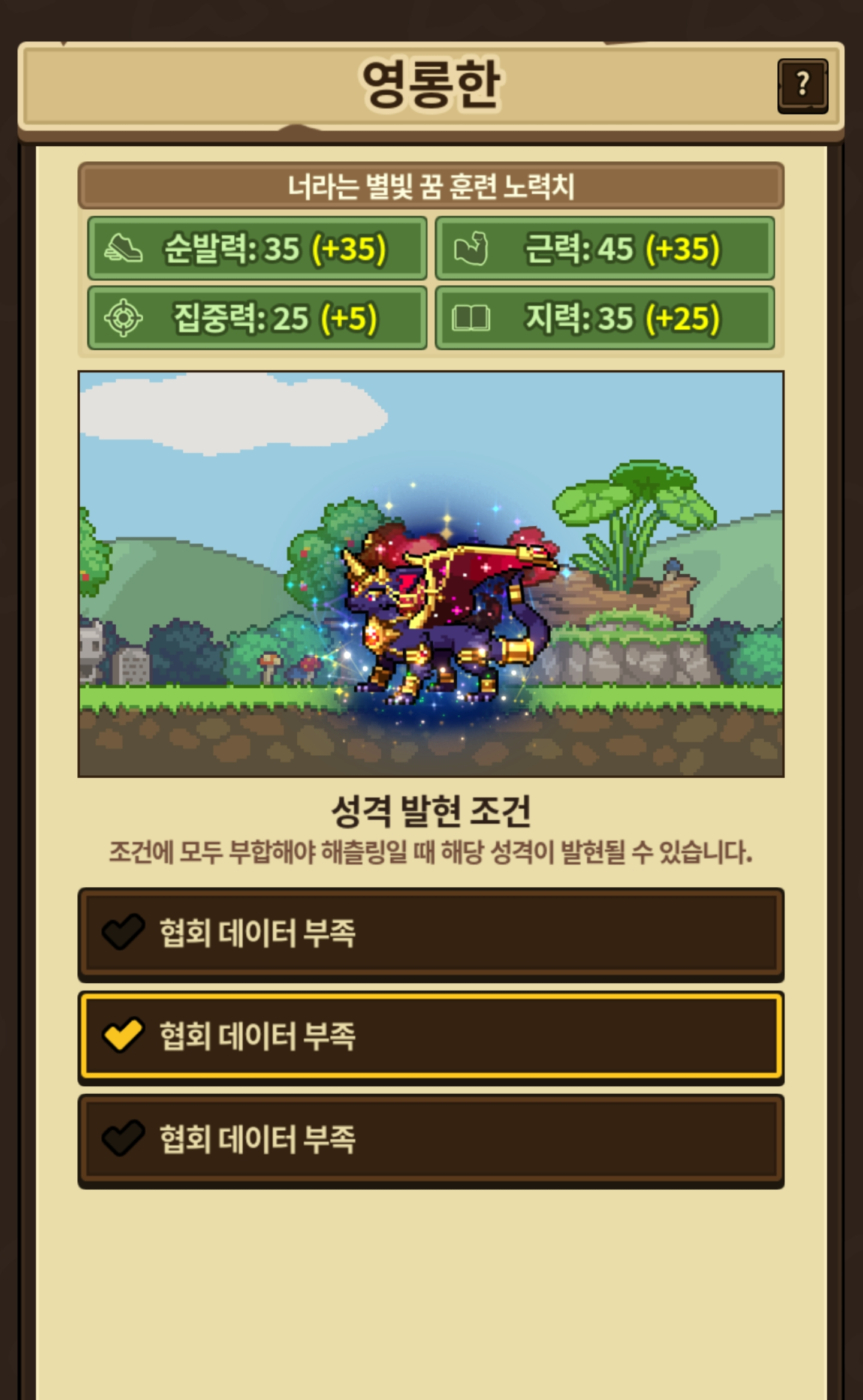 이렇게 했는데도 첫번째 목록에 체크가 되질 않고 있는데 그냥 지력에 5로 두번 더 하면 되겠죠? 🥺 아닌가.. 어디서부터 잘못 됐을까요 🥲