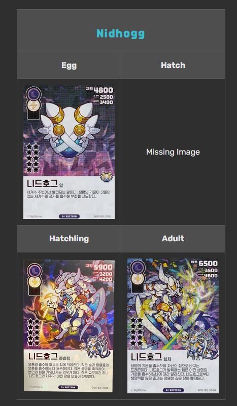 이 카드 가지고 계신 분 계신가요? 드래곤 통계가 누락됐네요 (체력, 공격력, 방어력)