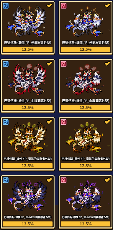 特殊外觀僅能透過本月龍蛋獲得,其列表如下。