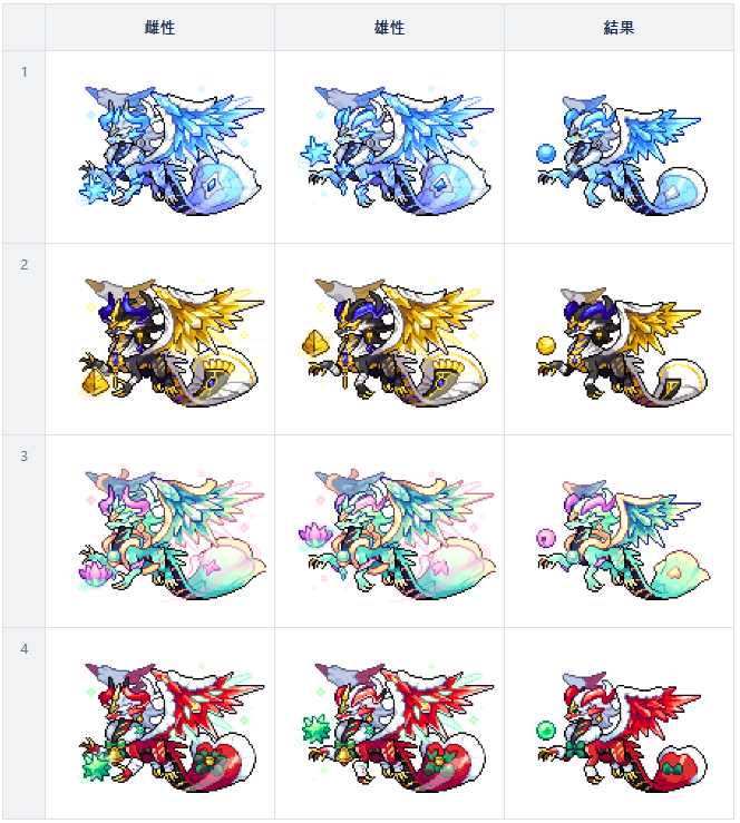 已新增本月龍蛋專用配種公式:無論時間,只要第一代為相同外型進行配種,即有機率獲得特殊的外觀第二代。