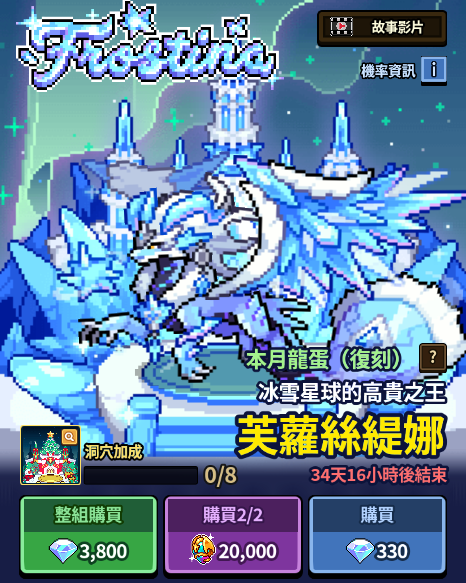 隨著 2025 年 12月來臨,如先前預告,2024 年 12月本月龍蛋「芙蘿絲緹娜」也可再次購買。