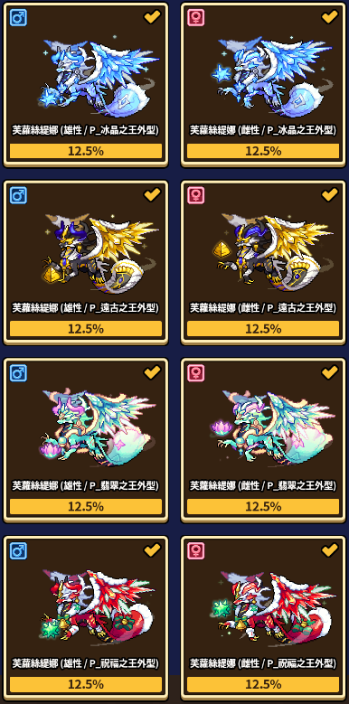 特殊外觀僅能透過本月龍蛋獲得,其列表如下。