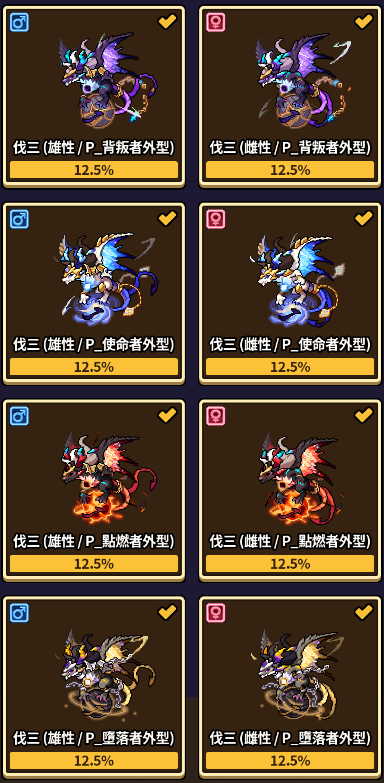 特殊外觀僅能透過本月龍蛋獲得,其列表如下。