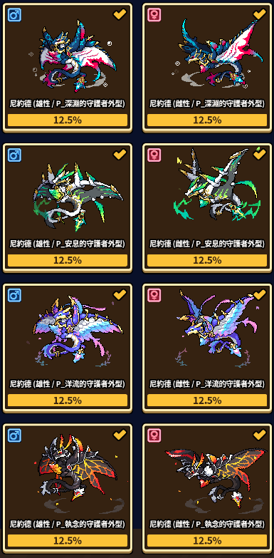 特殊外觀僅能透過本月龍蛋獲得,其列表如下。