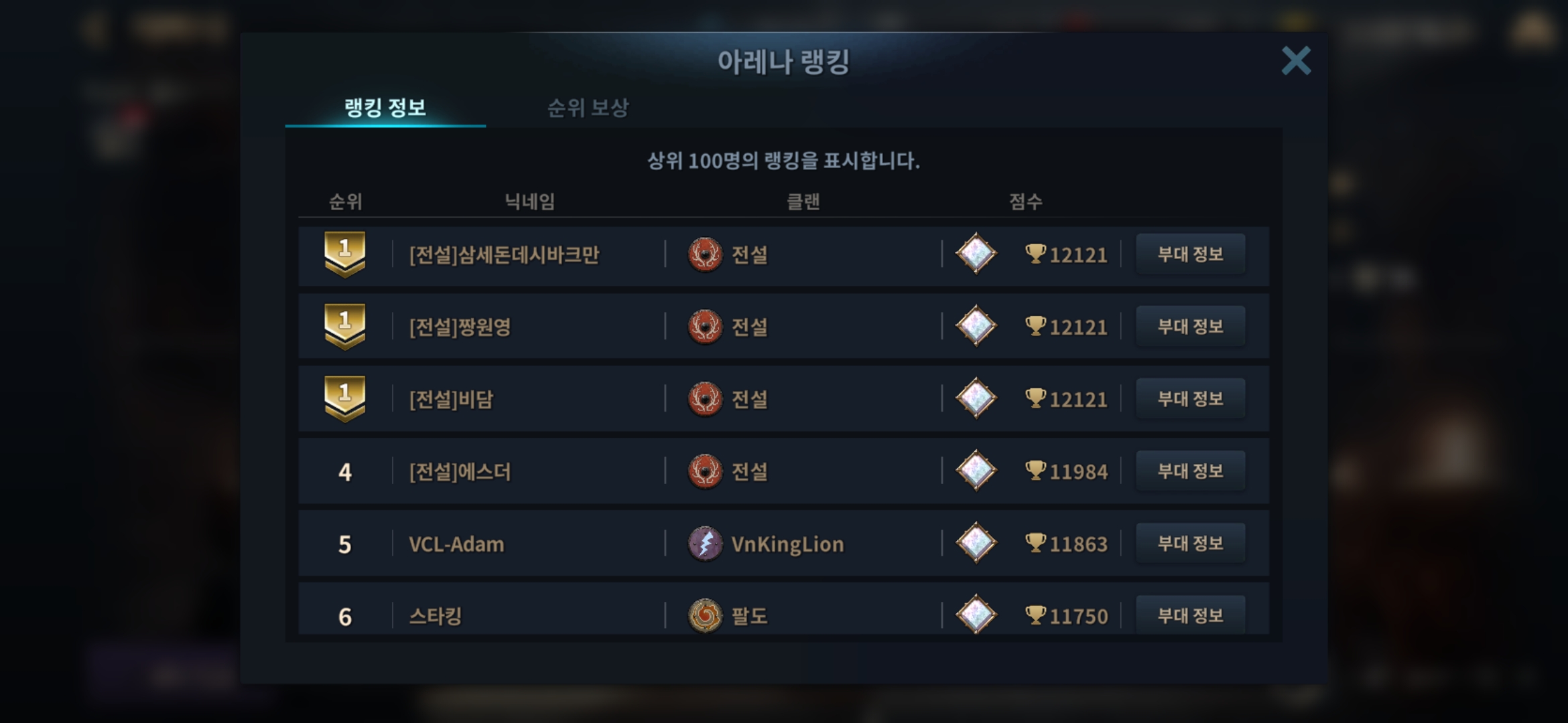 자유 게시판 아레나 5위 VCL-ADAM님 전설그룹으로 초대합니다 백세이돈 2024-05-05 18:56 166 6 공유 공유 URL 복사 페이스북 왓츠앱 카카오톡 라인 레딧 닫기 공유 0 1 댓글 6 삭제 이미지첨부 0/3000 등록