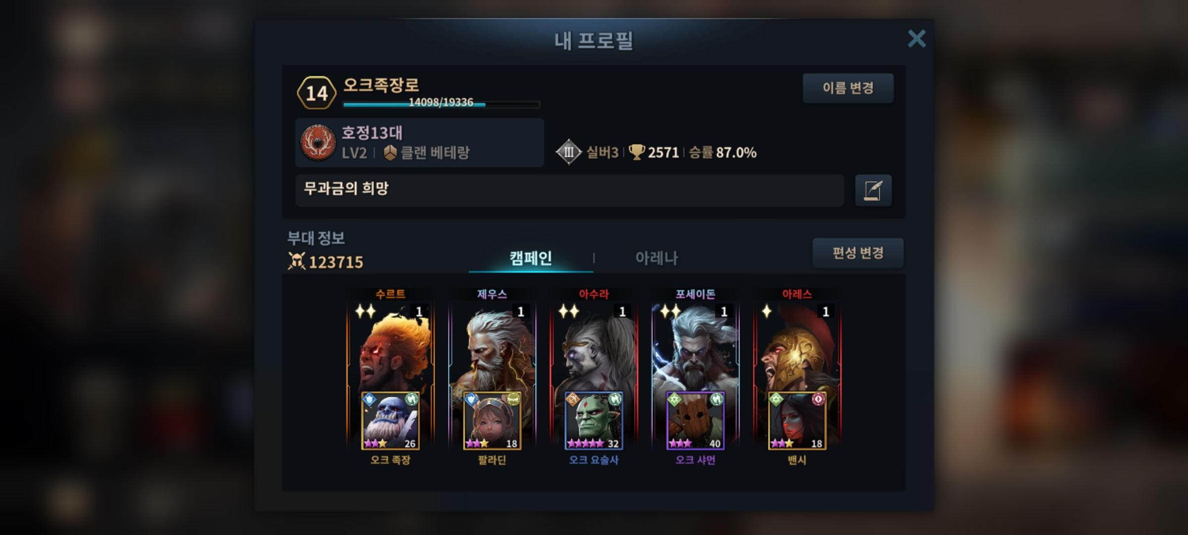 물론저도 중 후반에는 전설또는 신화 영웅을 쓰겠지만 초반 러쉬에 희귀영웅이 굉장히 좋아요