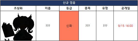 * 신규 영웅의 정보는 9/15 16:00에 오픈됩니다.