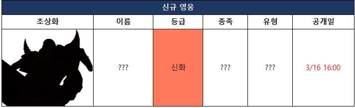 * 신규 영웅의 정보는 3/16 16:00에 오픈됩니다.