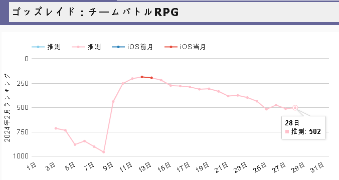위는 같은 시기 출시한 일본쪽 순위표예요. 가장 핫했을때인 보름전에 250등 정도였고, 계속 하락하고 있습니다.