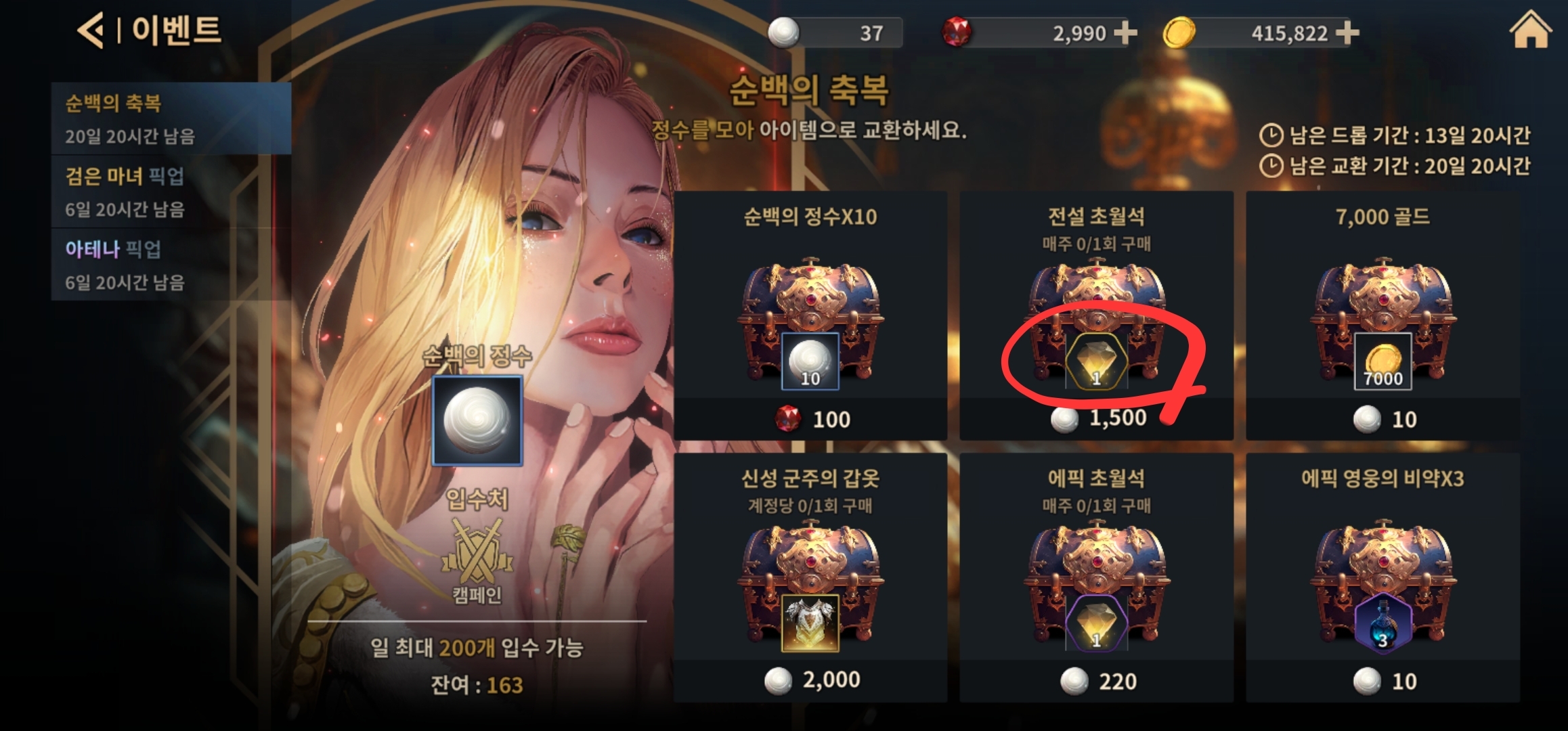 전설 초월석 꼴랑 1개주는데 재료가 1500개