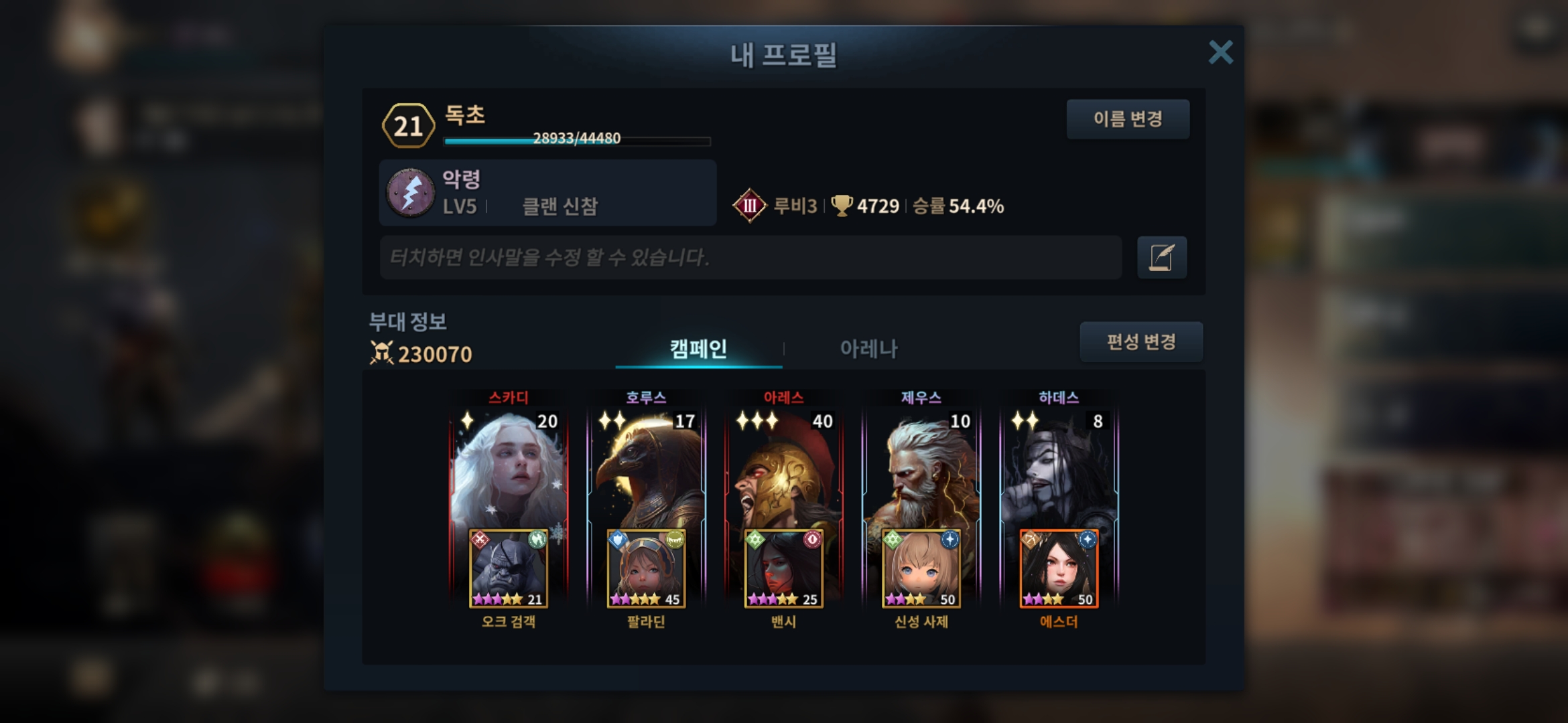 아레스와 호루스의 조합은 꿀조합입니다. 미션 아레나 챌린지 다 가능~