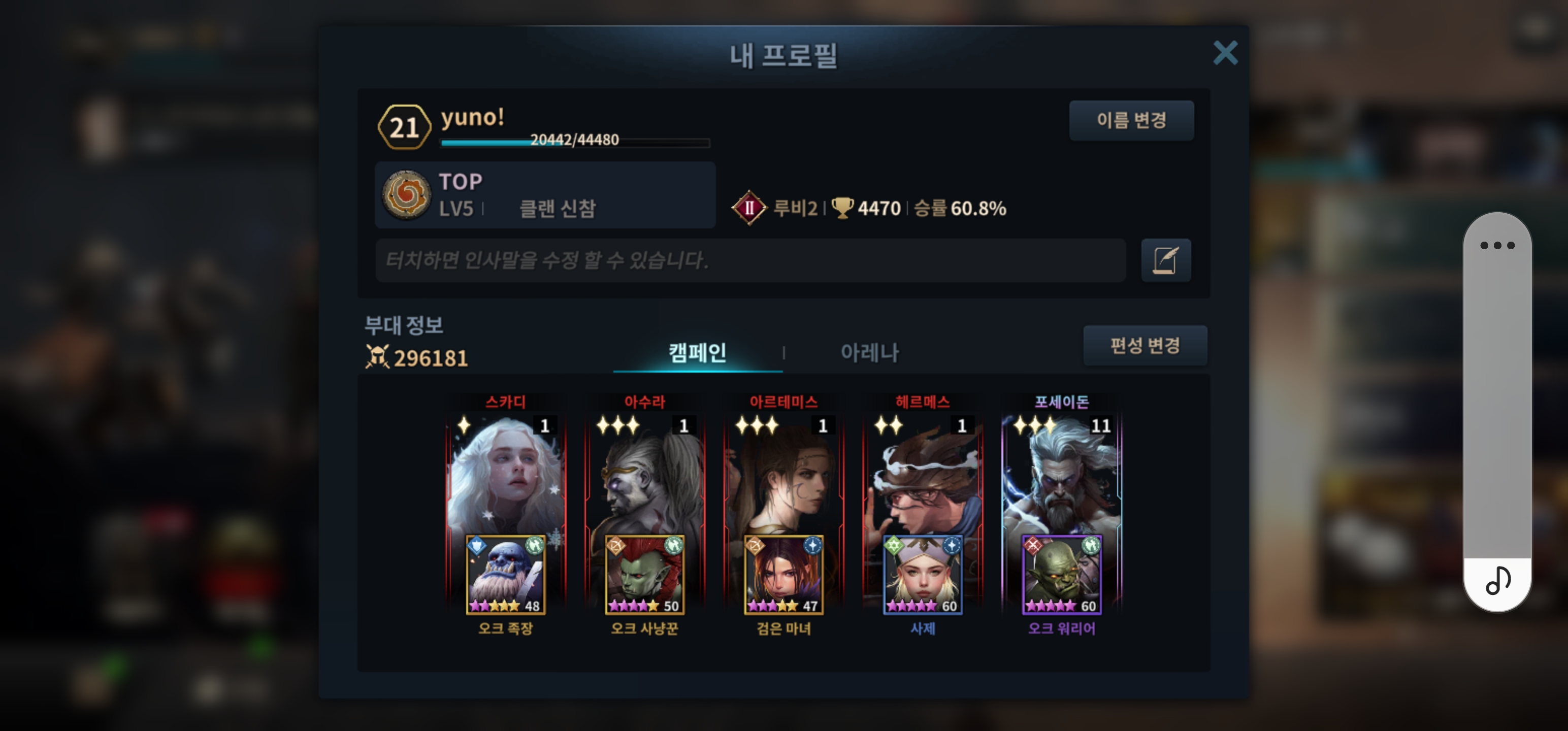 오크 3 인간 2 조합이고 밸런스 좋습니다