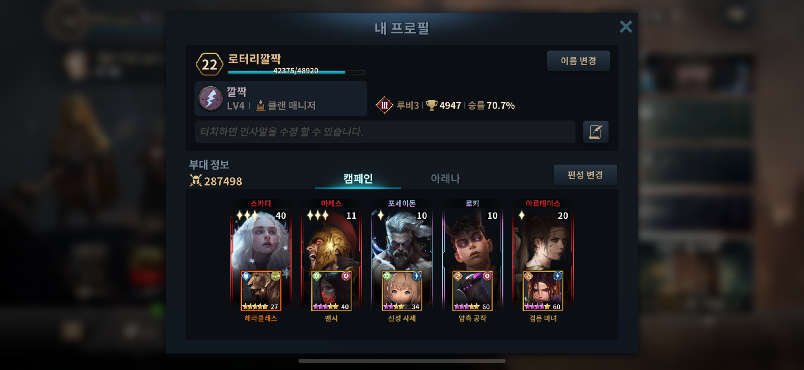 부대 사용 이유: 헤라클레스로 버티면서 암흑공작 궁극기로 공격 무난히 클리어