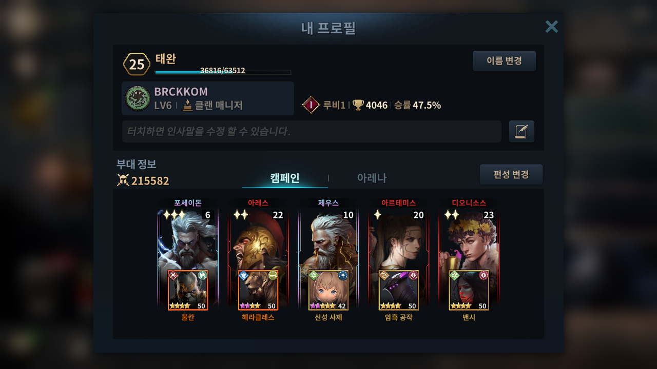 불칸과 헤라클래스가 버텨줘서 많은 생존력이 좋아요