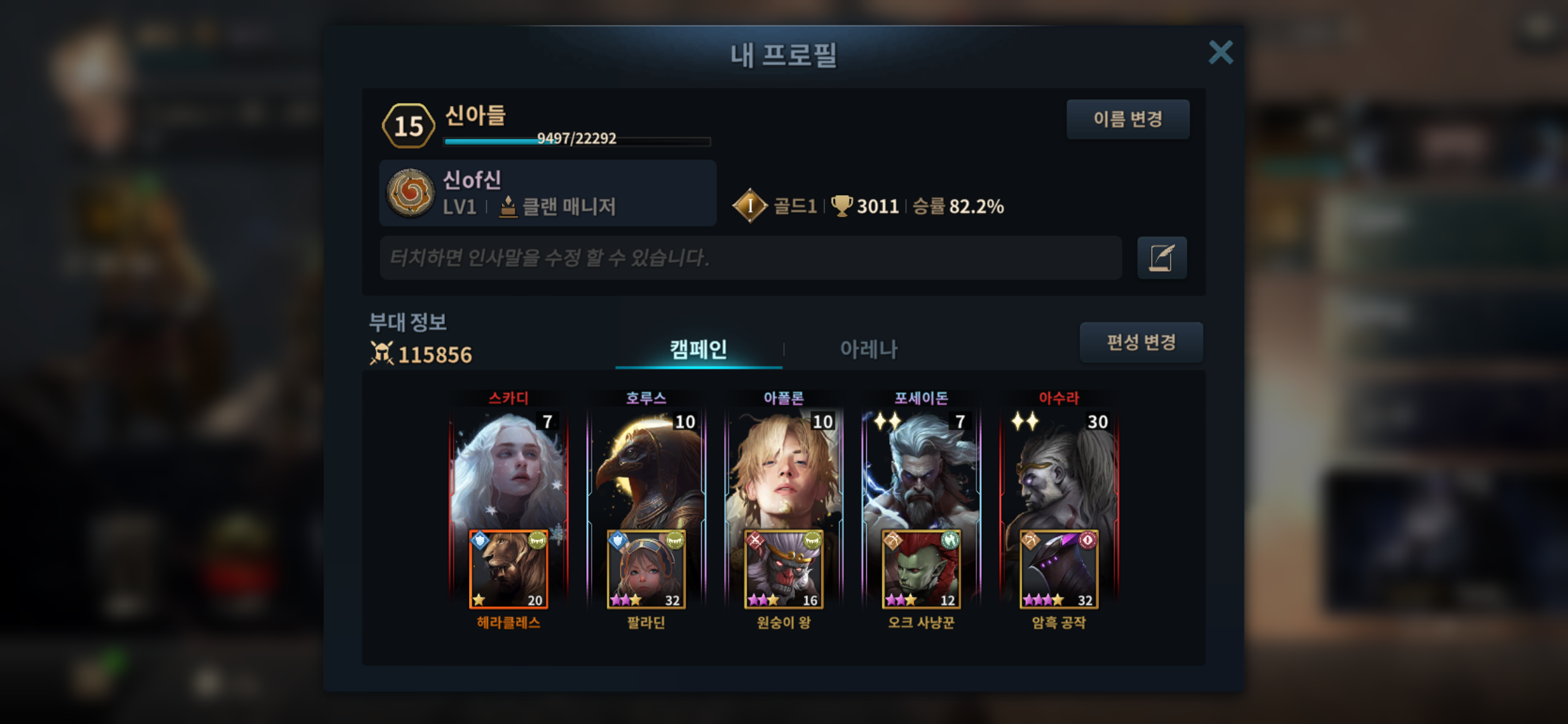 헤라클레스의 전술과 연동되는 영웅들로만 구성되어 hp가 안정되서 좋음