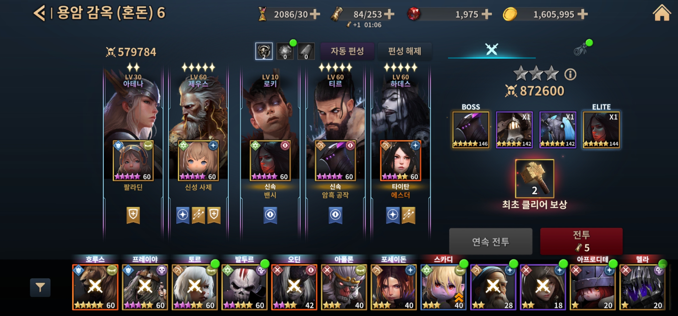 탱1 딜러2 보조1 힐러1 균형잡힌 조합으로 캠페인 및 아레나에서도 이상적인 만능 부대가 아닐까 합니다.