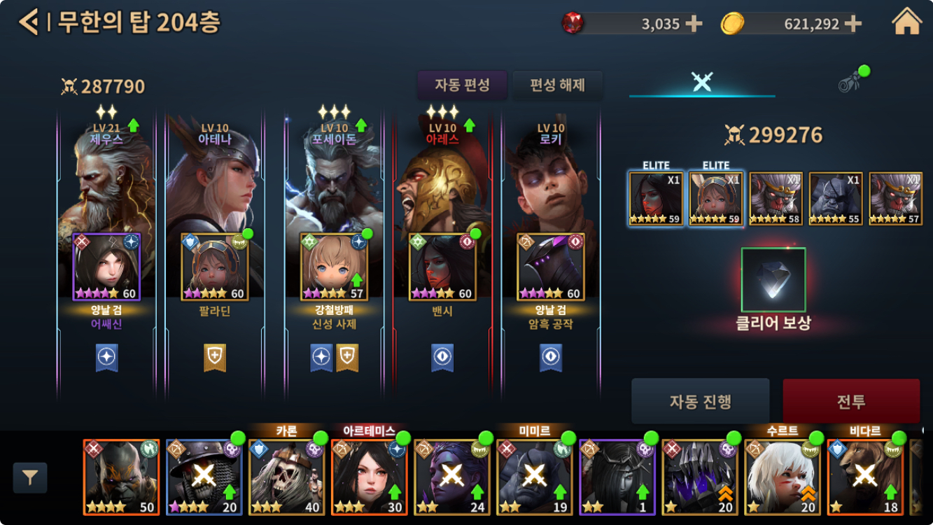 무한 탑 시 팔라 아테나 무적 사용하고 아레스 사용하면 200층까지는 클리어 가능합니다 ㅋㅋ