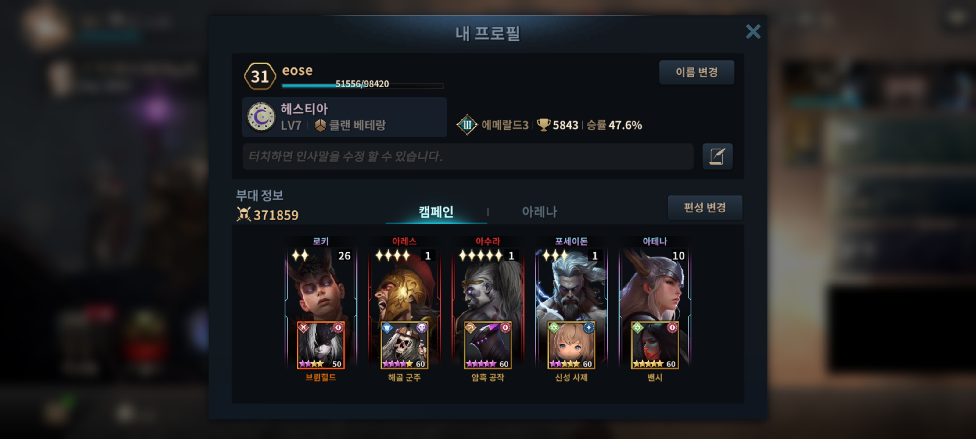 아레스로 공 뻥티긴후 포세이돈 스킬로 마무리하는 조합입니다.
