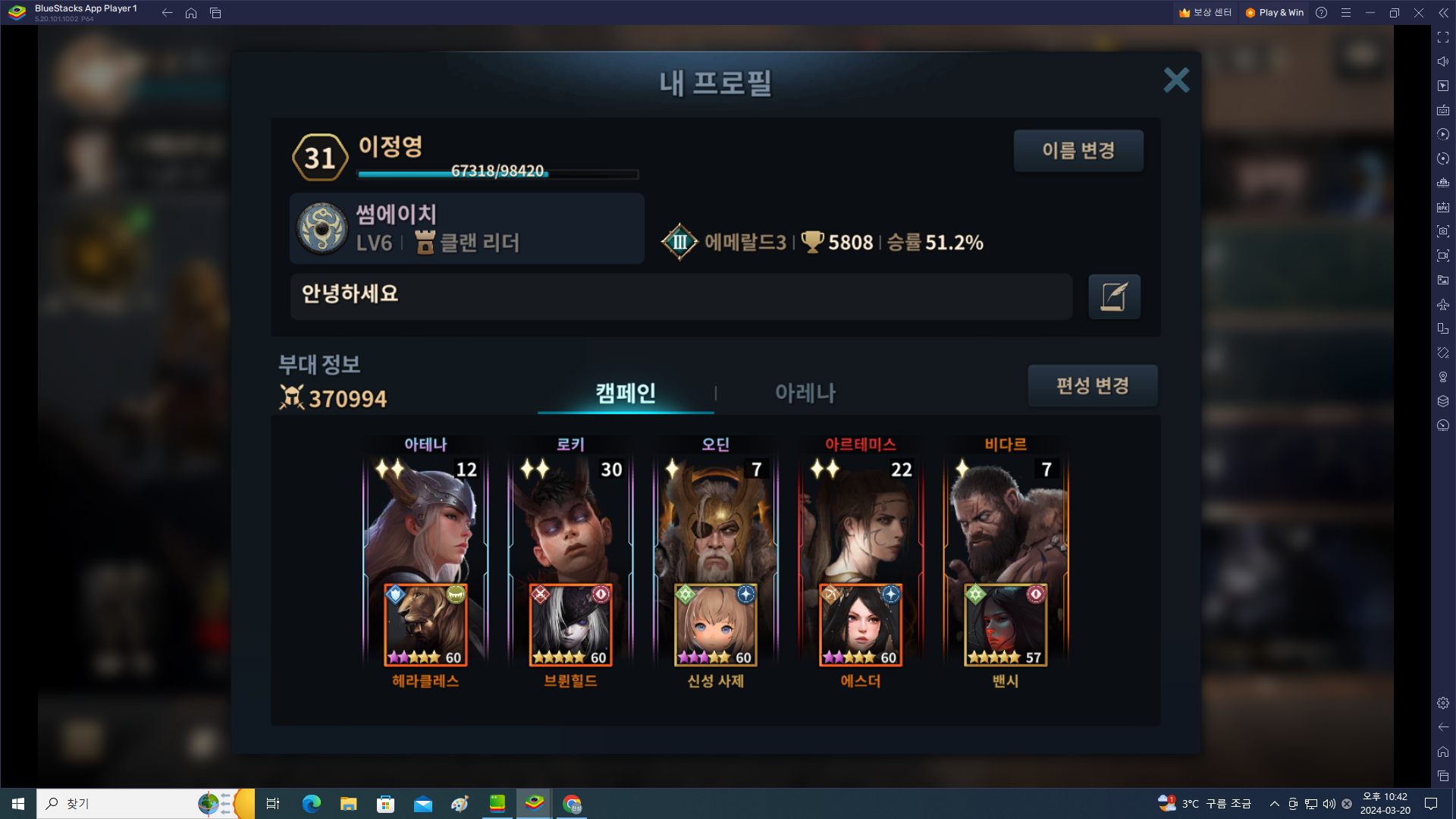 오크덱 하다가 전부 싹밀고 정석대로 가고있고 클던 아레나 캠패인 모두 만족하며 하고있어요