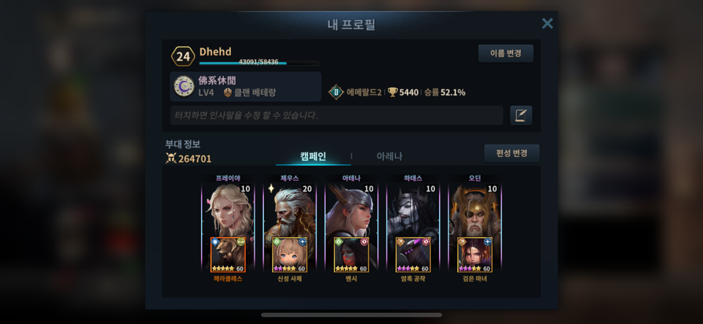 지옥5까지는 완료했습니다 헤라 초월만 다 돼도 원탱 가능