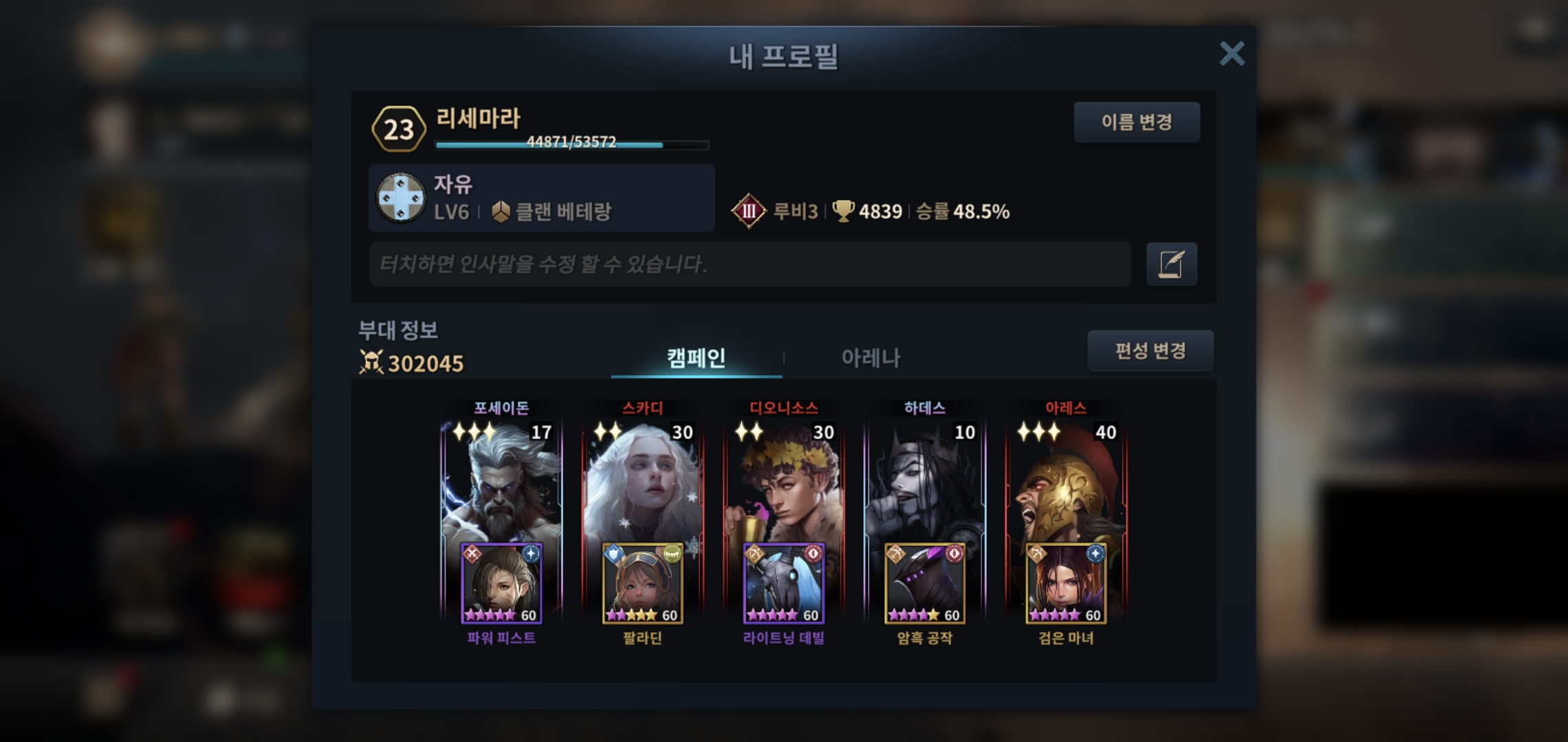 팔라딘과 피스트로 전방 탱커로 배치하고 암흑공작과 검은마녀로 폭딜및 지속딜로 캠페인 뚫으로면 진행중!!