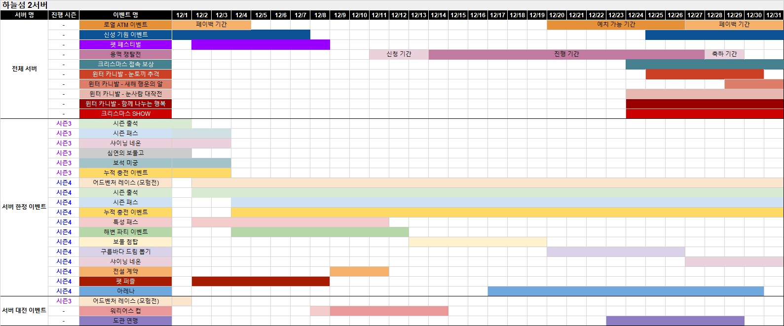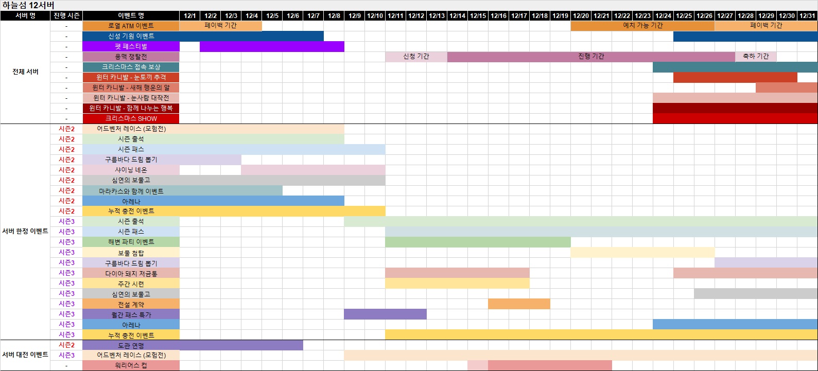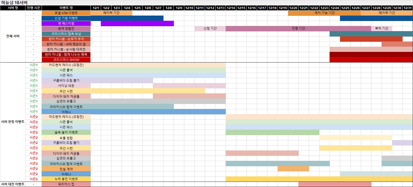 ※ 하늘섬 1서버 / 2서버 도관 연맹 이벤트 일정이 수정되었습니다. (12월 23일)
