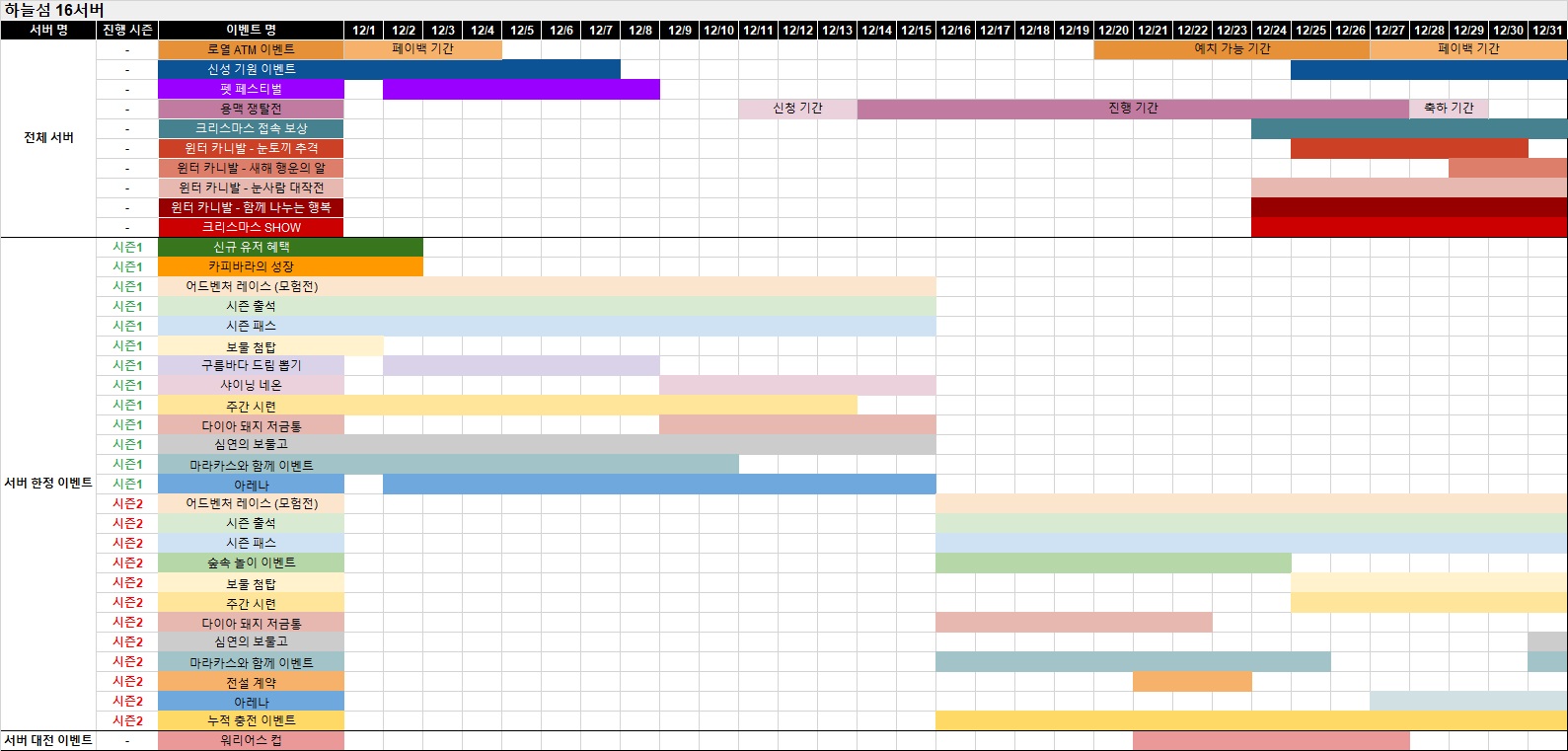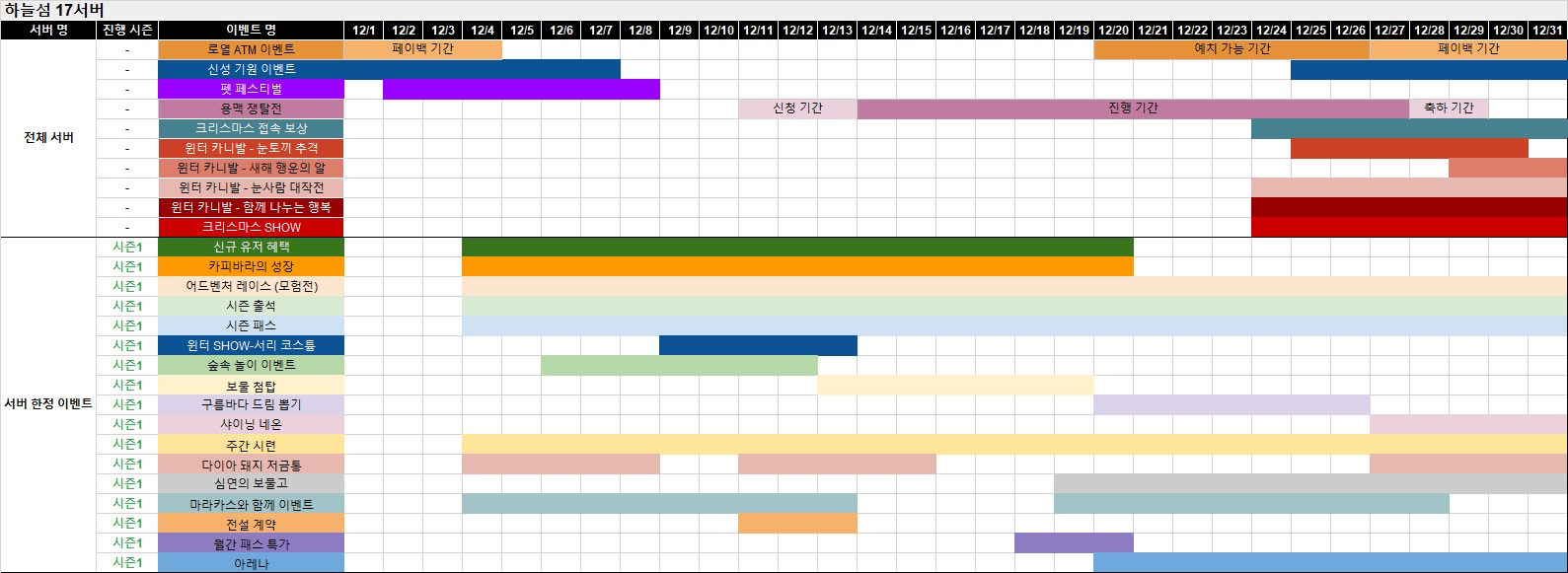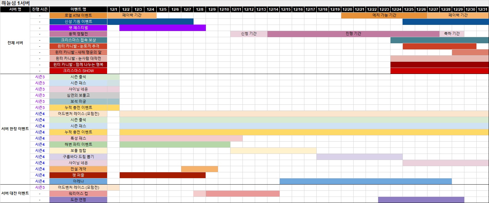 ※ 하늘섬 1서버 / 2서버 도관 연맹 이벤트 일정이 수정되었습니다. (12월 23일)