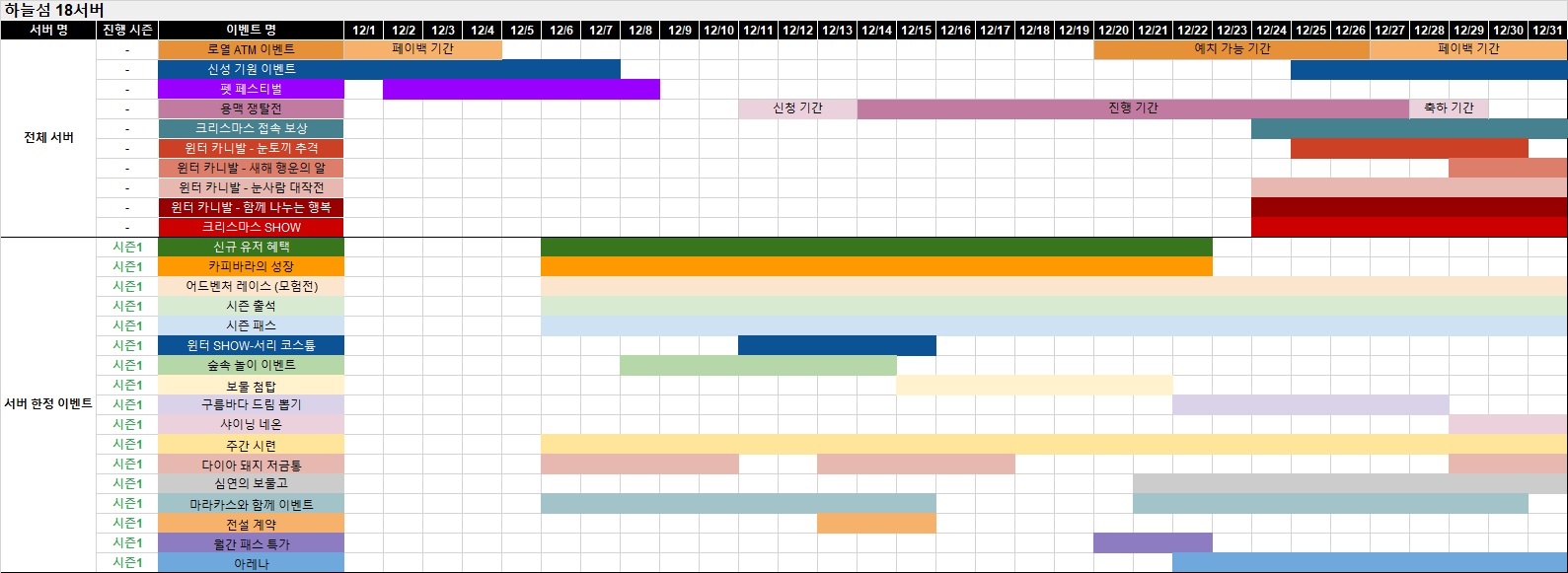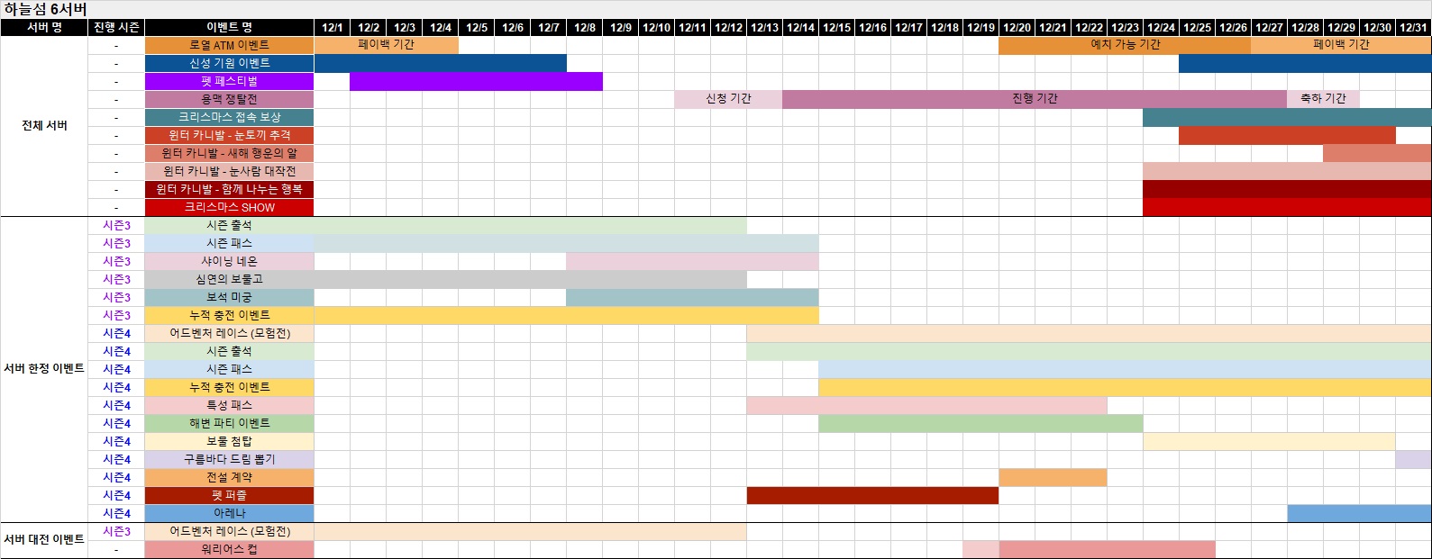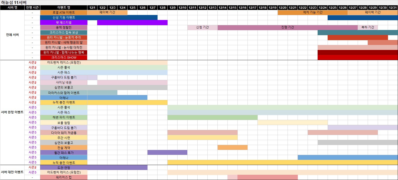※ 아래에서 서버명을 클릭하시면 해당 서버의 이벤트 및 상품 진행 일정을 확인할 수 있습니다.