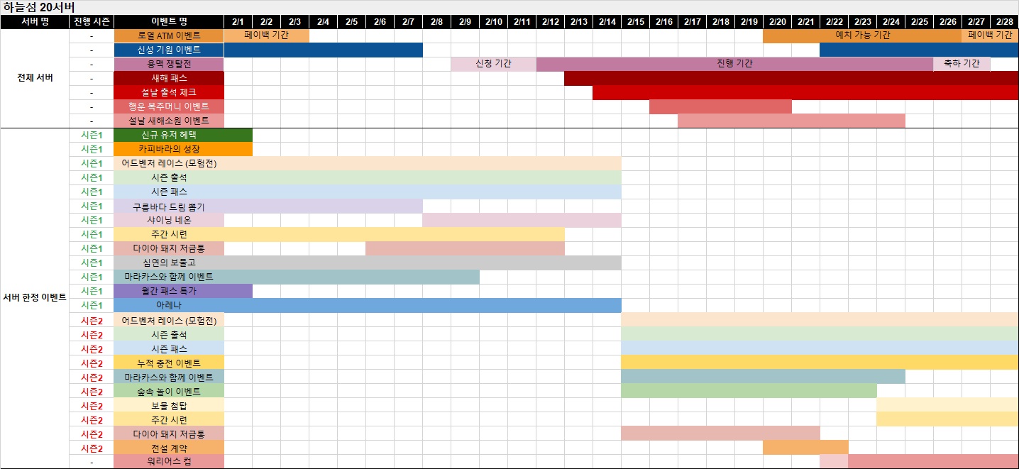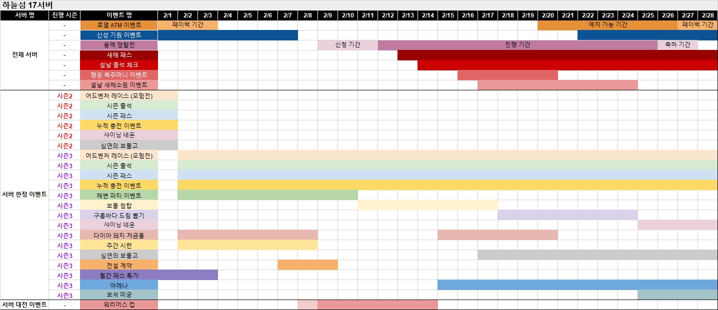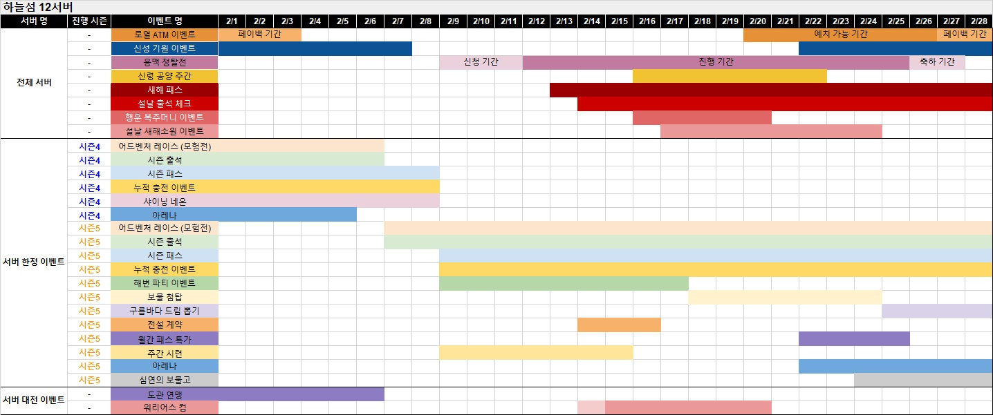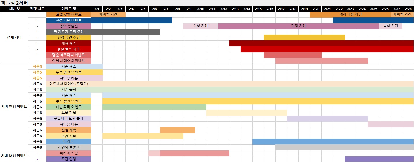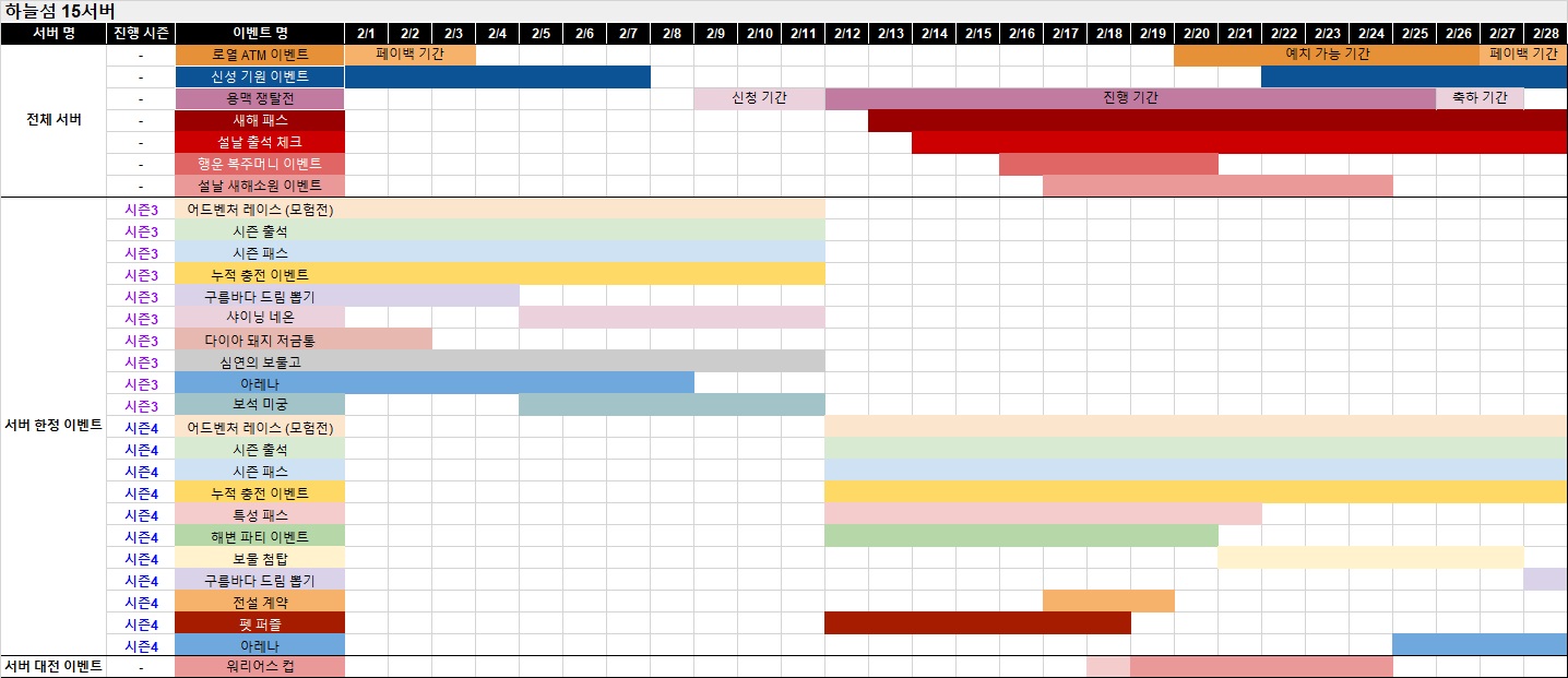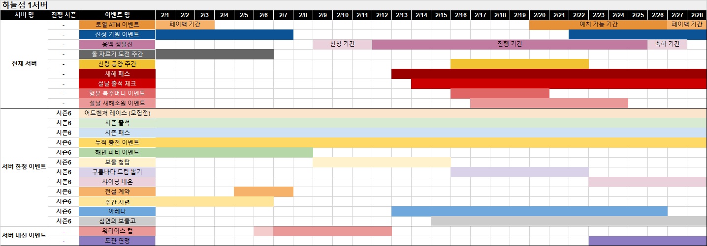 ※ 아래에서 서버명을 클릭하시면 해당 서버의 이벤트 및 상품 진행 일정을 확인할 수 있습니다.