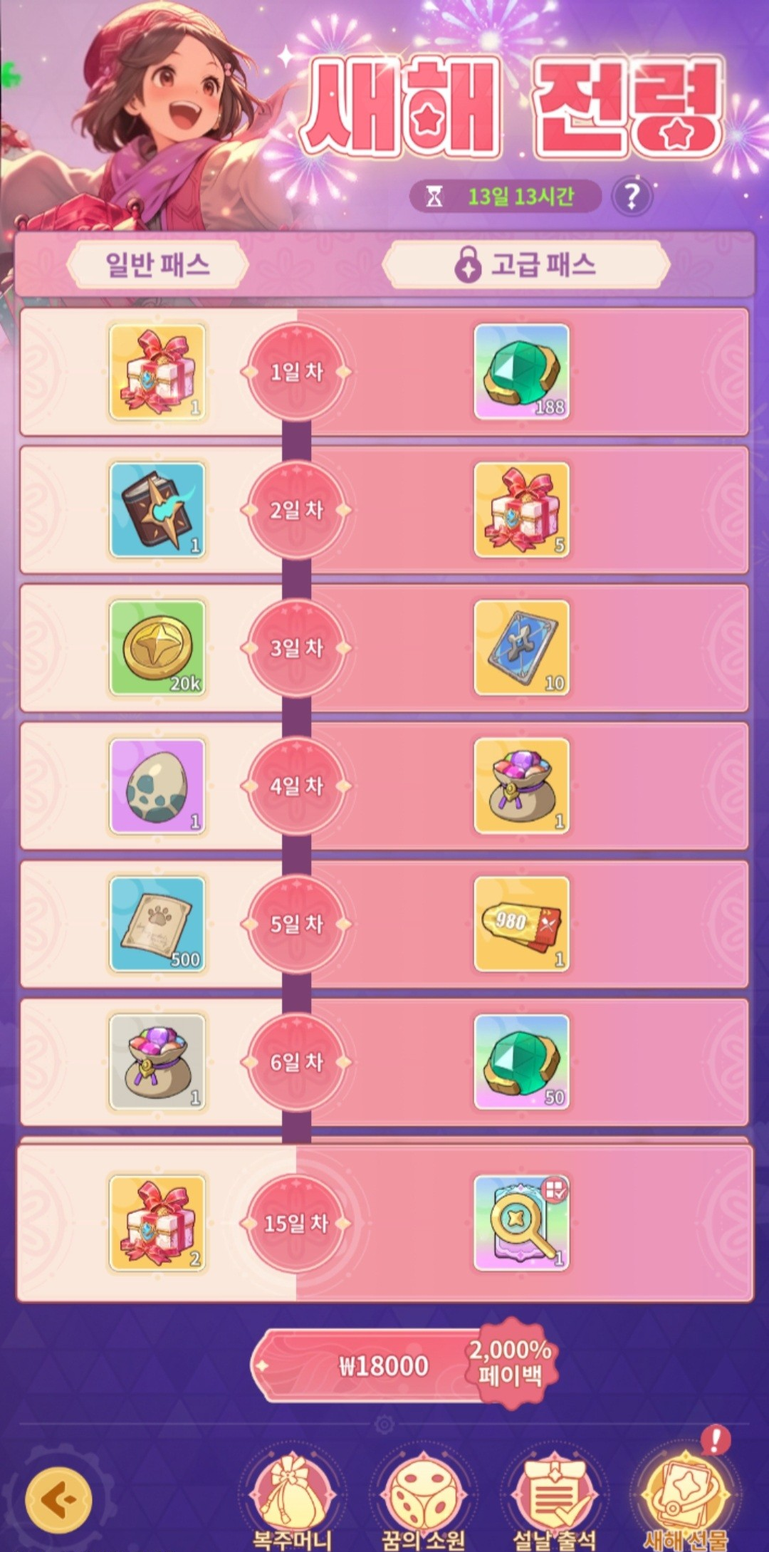 - 새해 전령 패스는 무료로 보상을 얻을 수 있는 일반 패스와