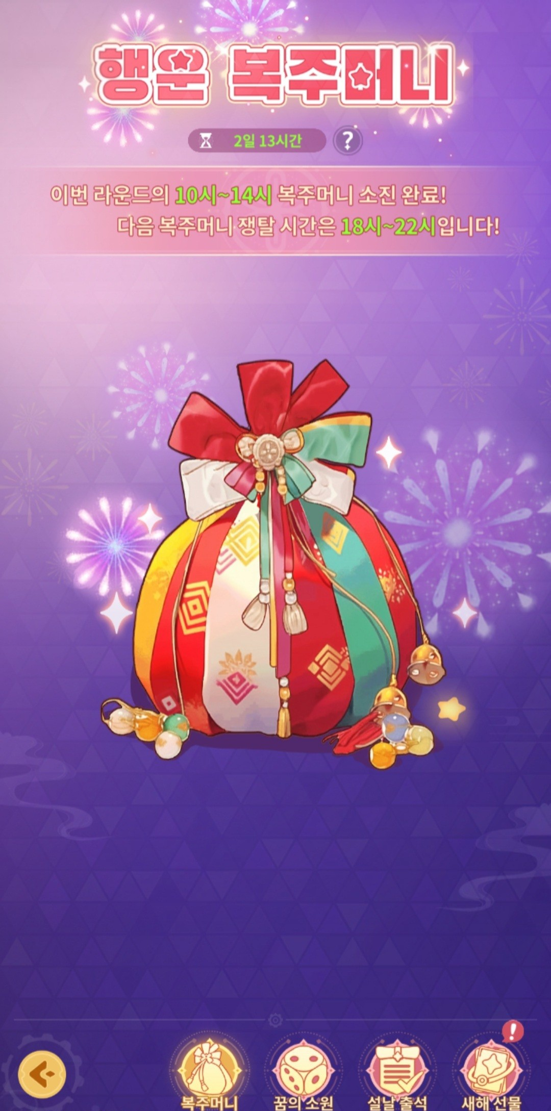 - 행운 복주머니는 하루 2번 획득 가능합니다.