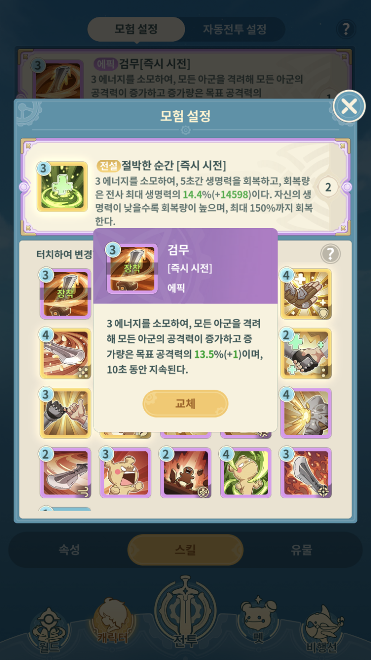 팀 공격력 올려주는게 끝이라 자동전투 시간 단축에나 쓰이지, 잘 버텨주는게 중요한 보스전에서 빨리 죽을 것 같은데 그걸 왜 쓰냐 생각할 수 있습니다