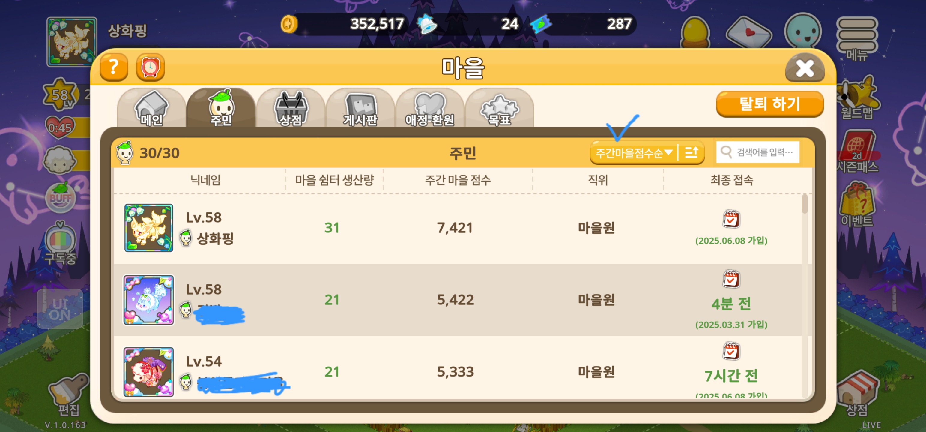 P.S) 마을 내 다른분들도 최소 쉼터 20은 넘기셨으면..
