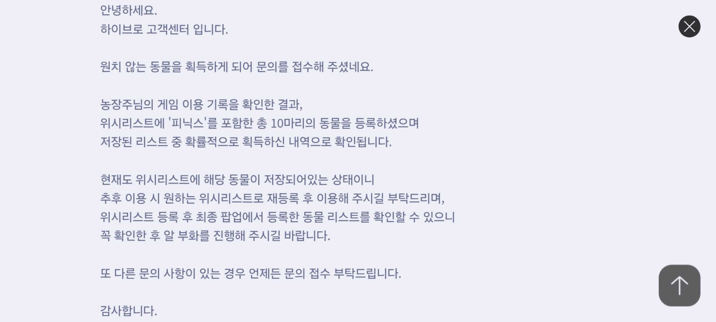 신규 전설 노리고 황금알부터 알까서 위시리스트 저장하면서 알뽑은건데… 이전 위시리스트 적용되었는지 피닉스 중복으로 나와서 왜 위시리스트 저장이 미적용된건지 문의했는데 답변이 이렇게 왔네요??