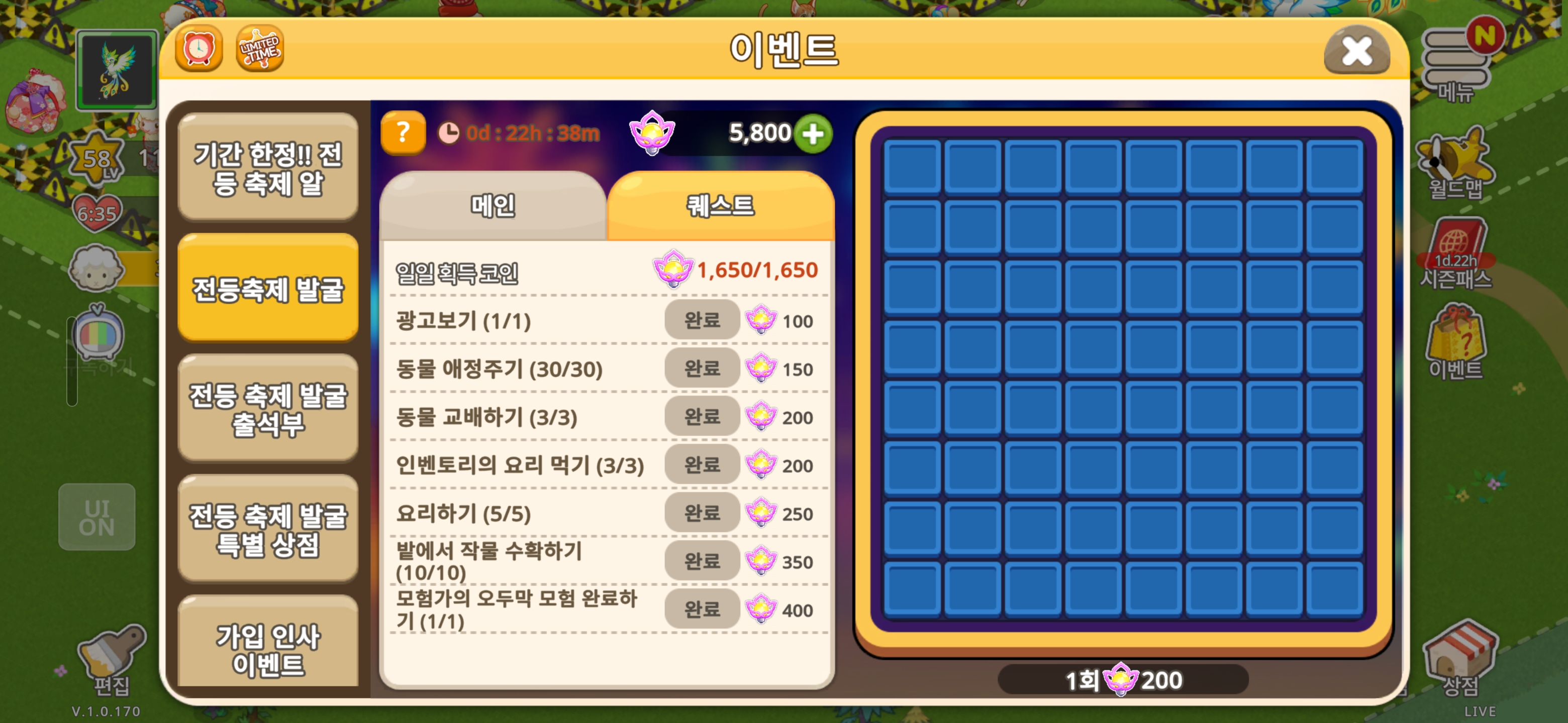 아니 젠장 왜 200코인 차이냐고-_-더 이상 얻을 루트도 없는데 코인을 벨로도 못 산대냐…발굴이 너무 심하게 운빨이었음이 큰 거 같다ㅡㅡ한 칸 더 빨리 찾았으면 이런 억까 안 당한다는 거 아니냐…너무 타이트하네 이번 이벤은ㅋㅋㅋ이전엔 그래도 풀참하면(보드게임 형식이나 빙고 형식 등) 생산 건물 구입은 가능한데 이건 뭐 진행 구조가 문제다🤬