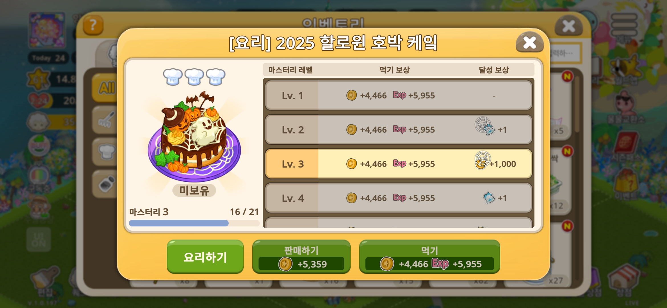 요리먹기할때 다먹고 창닫기하고 다음요리 눌러서 먹는게 불편해요