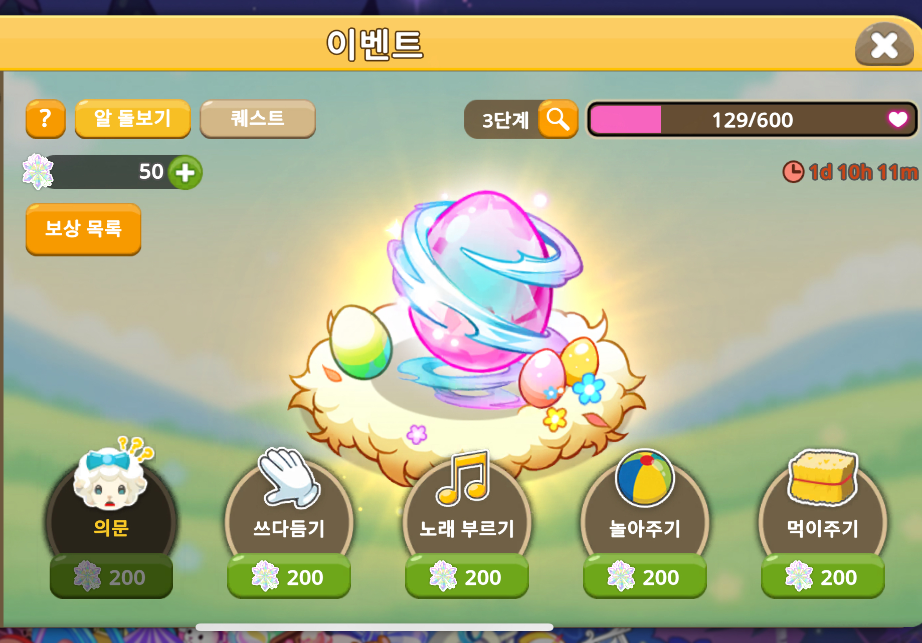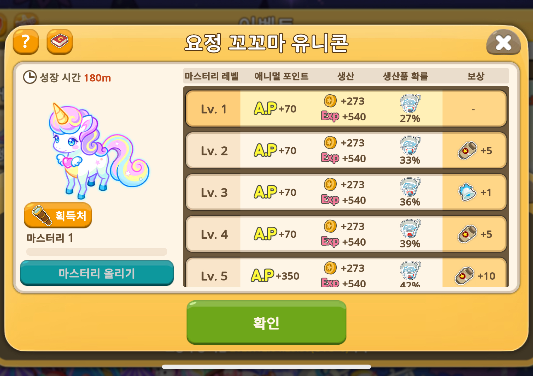 3단계는 4배가 뛰어서 600이라 현질을 얼마나 해야햐는지…. 이번 유니콘 귀여웠는데 포기했습니다ㅠㅠ