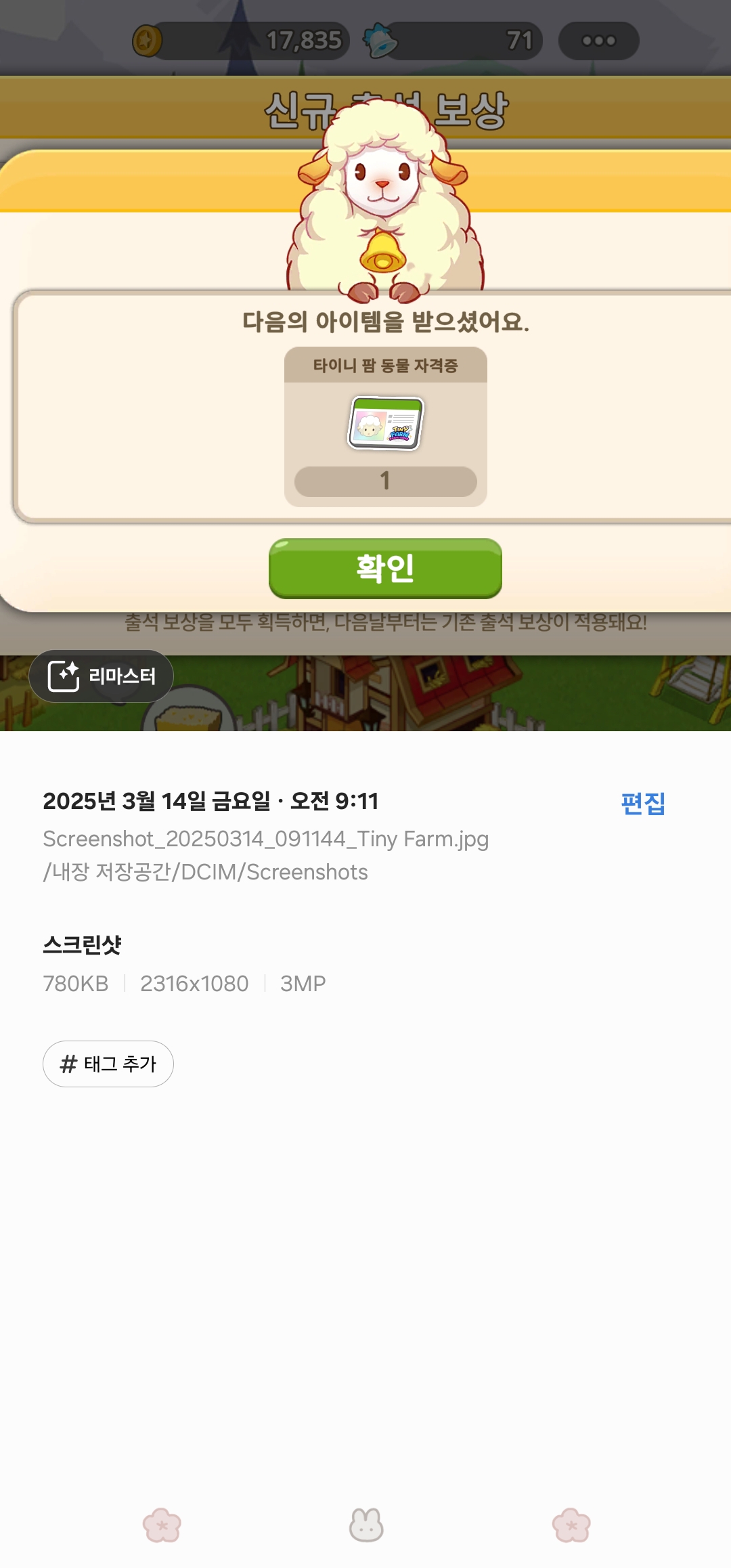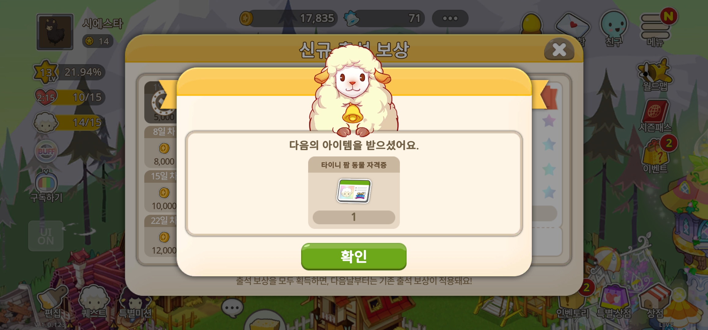출석 보상에 동물 자격증 5일차에 하나뿐이라고 얘기해서 오늘 확인해보니까 진짜더라구요.