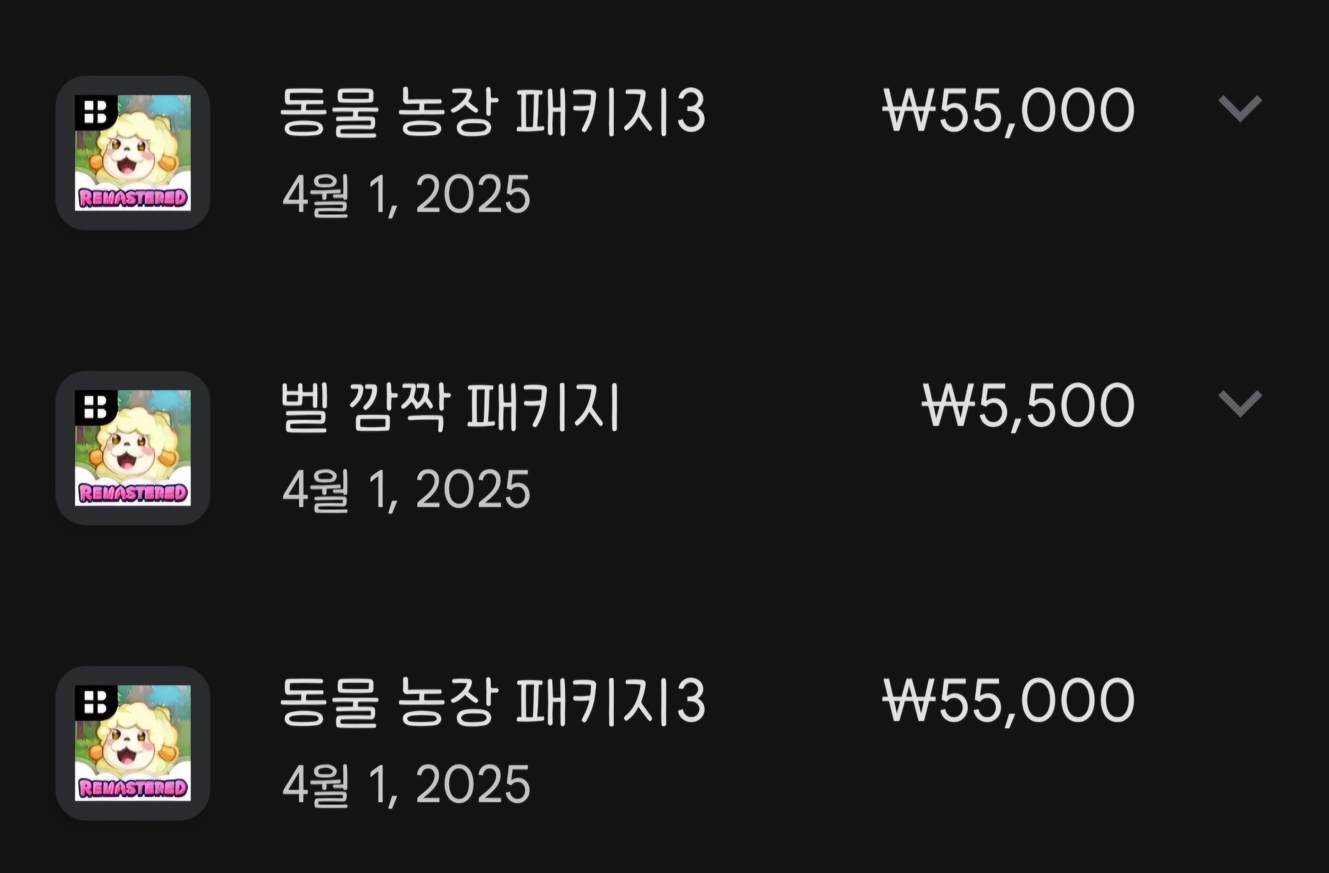 마지막으로 패치가 마음에 들어 과금한 내역을 올리며 마무리 하겠습니다. 감사합니다.