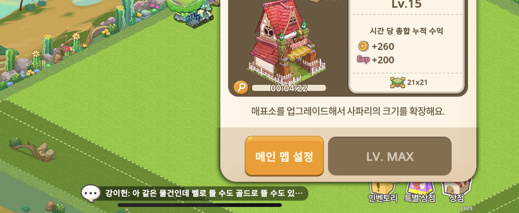 매표쇼 건물에는 확장이 다 되었다고 뜨는데 맵 화면에는 덜 되어있는 것처럼 (좌측하단 이미지 참고) 떠서오ㅠ 오류인가요? 아니면 더 확장을 할 수 있는건가요??