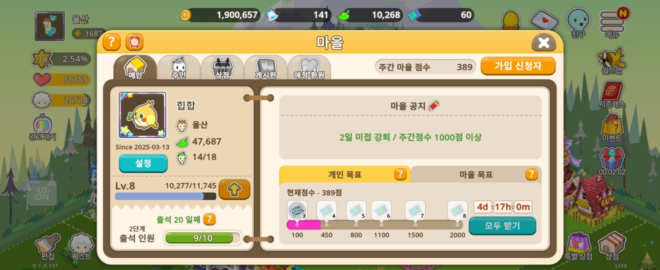 😀 주간점수 1000점 미만시 강퇴
