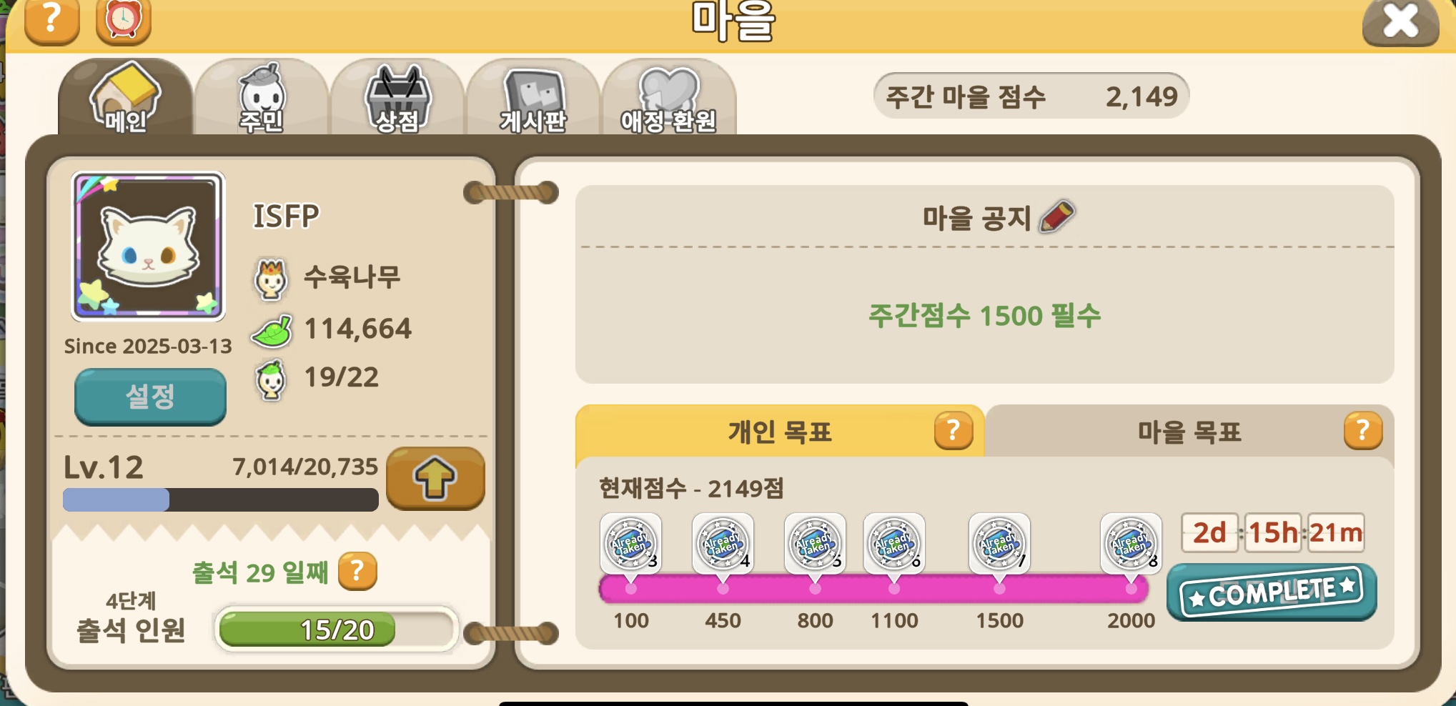 [Lv.12 마을 - ISFP] 신규 주민 모집중!
