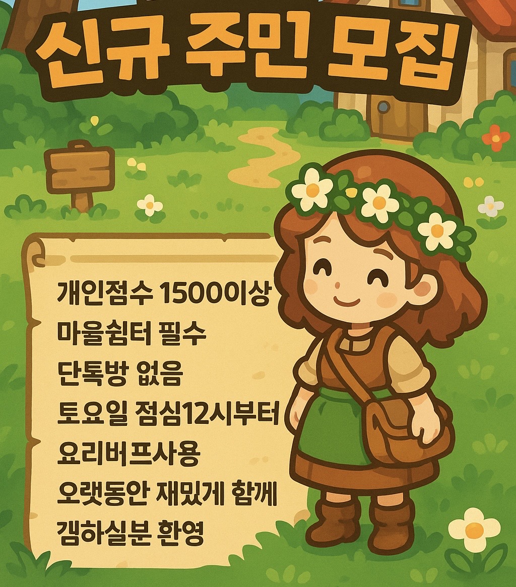 Lv18 마을 [ISFP] 에서 신규 주민 모집합니다.