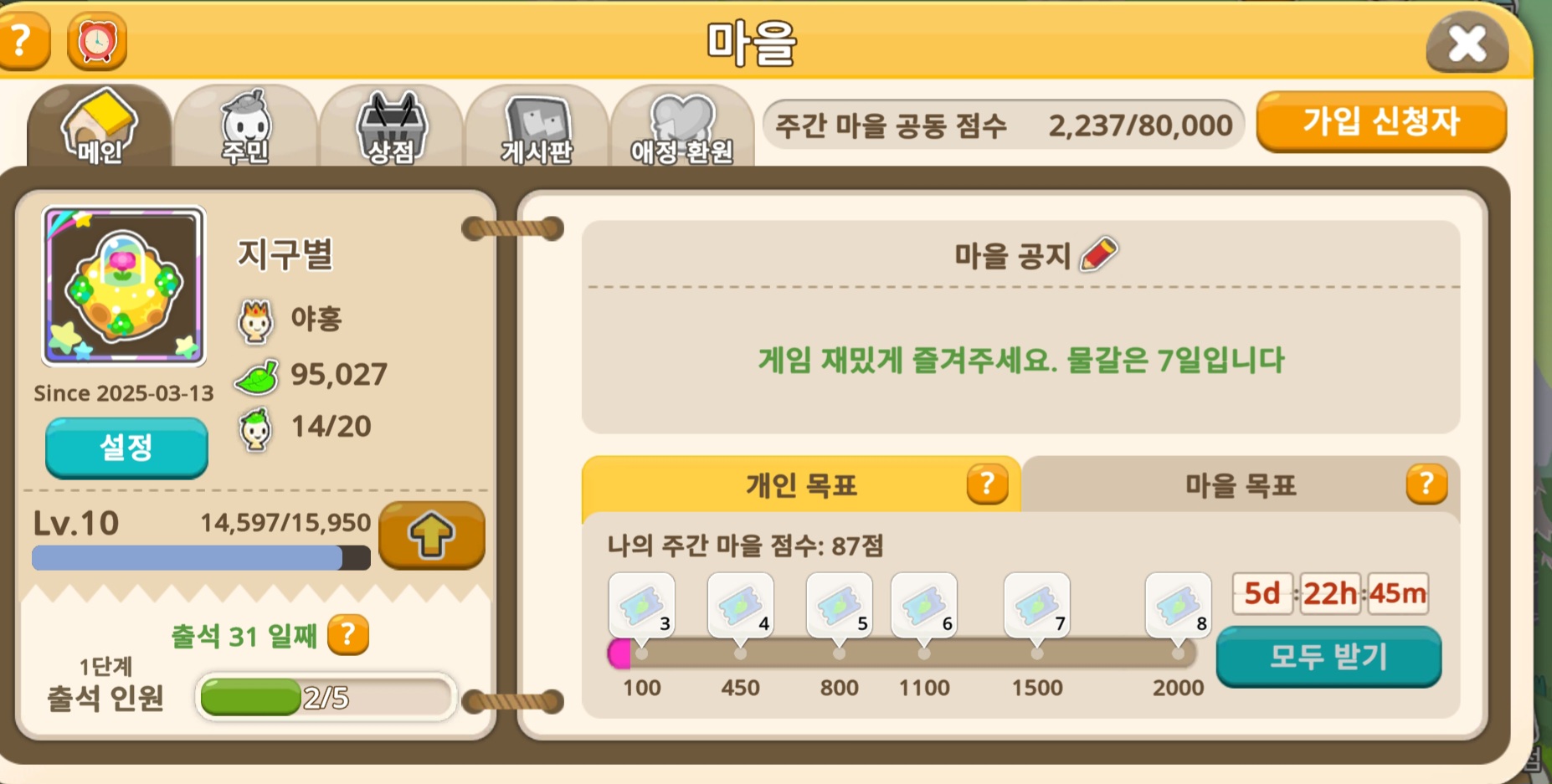 📌 [마을 출석 기준] 최대 7일 미접인 분들은 물갈(탈퇴)를 합니다.