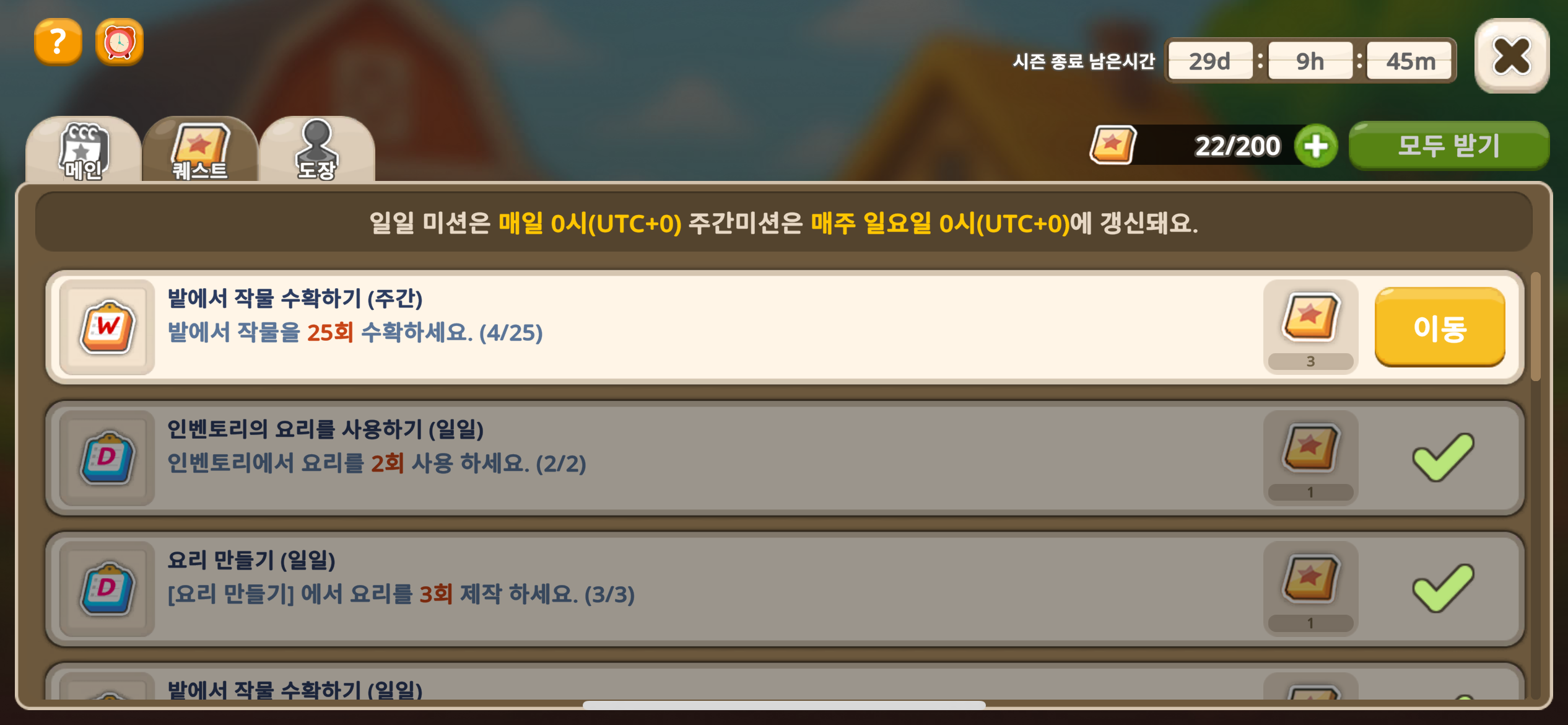 밭에서 작물25회인데 막상 누르면 교배소로 이동 되고 교배소에서 교배해야 올라가네요