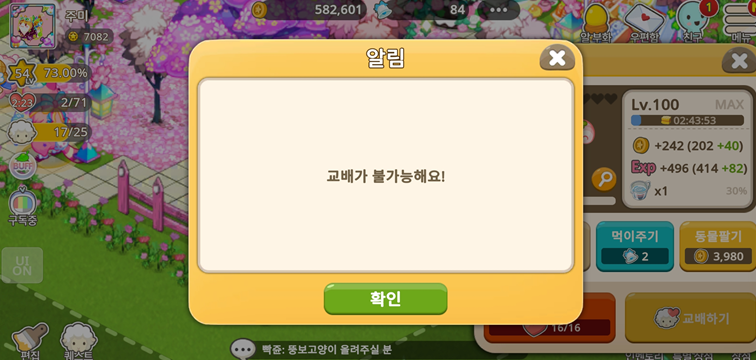 - 2. 교배가 불가능해요! 팝업 노출되며 교배 불가