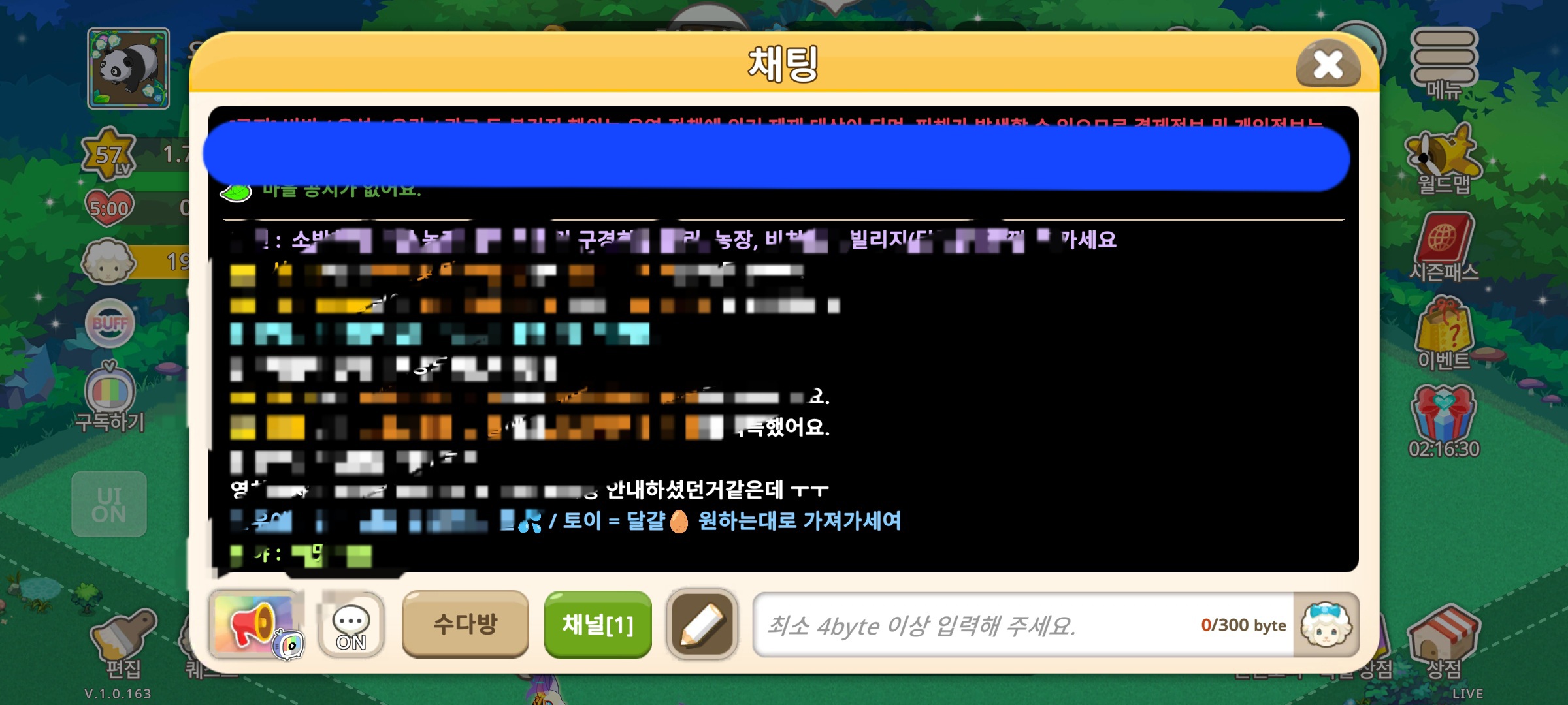 ex) '알프레도 : 현재 럭키코인이 열리지 않는 오류가 있습니다' 같은 식으로 혼란이 예상되는 부분을 공지만이 아닌 인게임 전체 채팅에도 상단고정 공지로 안내한다는 것.